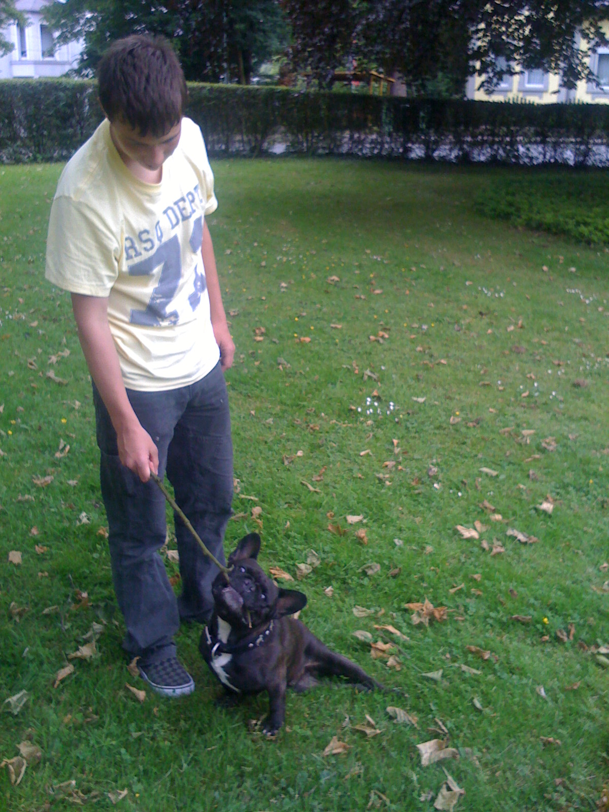 Das sieht ja schon sehr knuffig aus im Kinderwagen...´ne echt süsse Fratze ! Weiterhin gute Besserung! Was mir da gerade einfällt....woher ist Mayloo? Der kommt nicht zufällig vom Reitz aus Cronenberg?? Grüßchen, Chrissi & Lennox