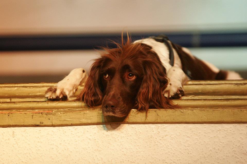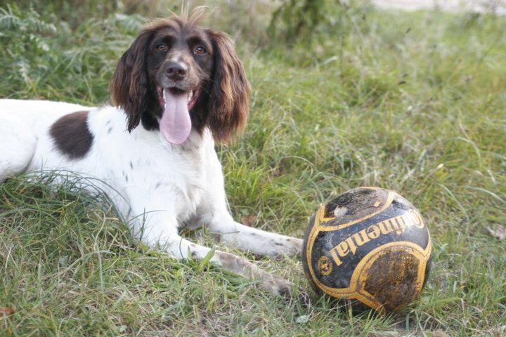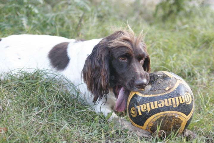 sichtlich aus der puste, nach viiiiiel herumgetolle, ball gespiele, hasen jagen, im wald schnüffeln etc :-)