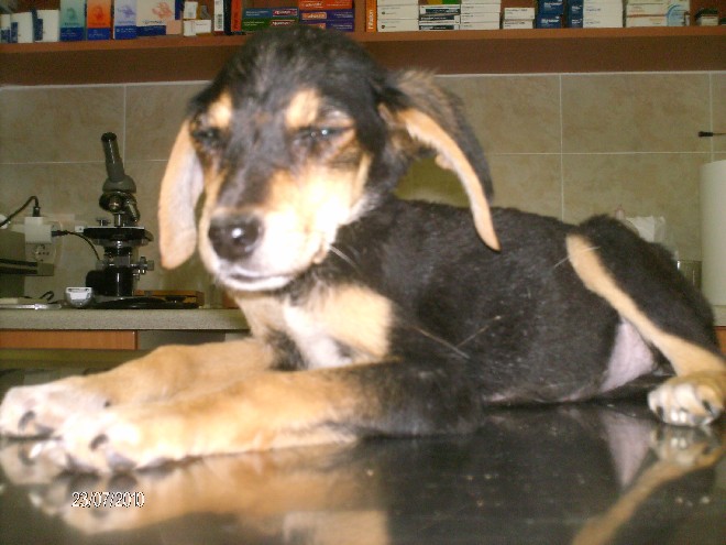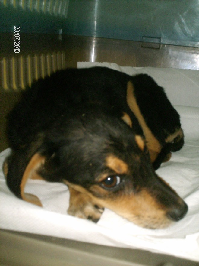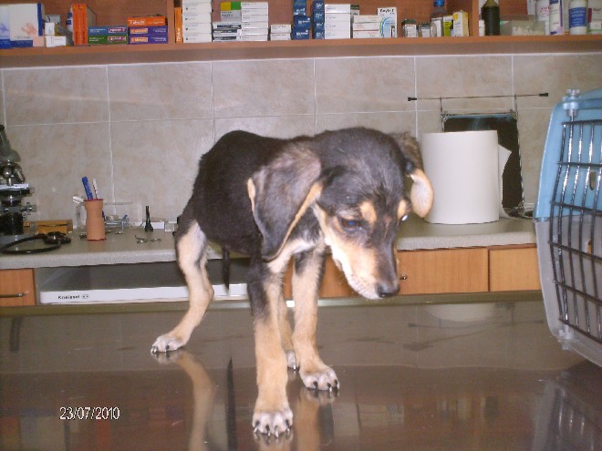 Violetera, 4 Monate alt, 2200 g schwer, 22 cm groß ... sie ist nur Haut und Knochen Sie lag drei Tage im Müll. Ein Niemandshund wie viele andere in Griechenland. Niemand hat auf sie geachtet. Weder die Einwohner der Nachbarschaft noch die Tierschutzvereine. Sie kämpft um ihr kleines zartes Leben und sie braucht unsere Hilfe! Unsere Tierschutzfreundin Areti aus Athen schriebuns heute über Violetera: Wie ich später erfuhr, lag sie drei Tage im Müll, bevor sich jemand ihrer erbarmte, sie aus der Mülltonne hob und in ein Beet der Grünanlage legte. SIe war ein Niemandshund wie viele andere in Griechenland. Niemand hat auf sie geachtet. Weder die Einwohner der Nachbarschaft noch die Tierfreunde/Tierschutzvereine. Violetera konnte sich nicht mehr rühren. Sie hatte keine Kraft mehr. Sie lag einfach auf dem Beet und wartete auf ihren Tod. Einfach stumm und voller Verzweiflung. Angelika, die junge Polin bot mir 10 Euro von ihrem ersparten Geld an, für die kleine Hündin, damit sie gerettet werden kann. Mehr könne sie jedoch nicht erübrigen, da sie Studentin ist, und entschuldigte sich dafür bei mir Das lehnte ich jedoch ab. Ich hätte mich geschämt, wenn ich diese Spende von ihrem geringen Einkommen angenommen hätte. Ein kleines Häufchen von Haut und Knochen. Angelika, eine junge Polin, die in Athen Jura studiert und als Haushaltshilfe arbeitet, rief mich in ihrer Verzweiflung an. Ich sollte sofort in den Park kommen. Ein kleines Hündchen lag im Sterben. Ich konnte meinen Augen nicht trauen. „Was sollte das sein?“ Ein Hündchen, mehr tot als lebendig, lag im Gras. Das einzige Lebenszeichen war das Wedeln ihres dünnen Schwänzchens. Violetera hat sich so gefreut, als ich sie ansprach. Die Obdachlosen haben uns erzählt, dass sie sich an die örtlichen Tierschutzvereine gewendet haben, aber niemand war bereit zu helfen. In der Nachbarschaft gibt es auch zwei Pet-Shops. Dort stehen Spendendosen der Tierschutzvereine, voll von Münzen für die Streuner! Aber Violetera wurde von allen ignoriert. Höchstwahrscheinlich bestand die Meinung, das Violetera die Hilfe nicht mehr wert sei, denn sie war ja schon dem Tode näher als dem Leben. Die Spenden kommen anscheinend nur gesunden Hunden zu gute! Angelika, die junge Polin bot mir 10 Euro von ihrem ersparten Geld an, für die kleine Hündin, damit sie gerettet werden kann. Mehr könne sie jedoch nicht erübrigen, da sie Studentin ist, und entschuldigte sich dafür bei mir Das lehnte ich jedoch ab. Ich hätte mich geschämt, wenn ich diese Spende von ihrem geringen Einkommen angenommen hätte. Ich habe Violetera sofort eingepackt und bin schnell zum TA gefahren. Ihr Zustand ist schlecht. Violetera hat schlimmen Durchfall, und Fieber. Sie kann nicht richtig stehen, essen und trinken. Sie ist total dehydriert. Ihre Haut ist trüb. Ihr Zahnfleisch ist ganz weiß. Sie hat eine schlimme Ohrenentzündung dazu. Der TA hat sie sofort entwurmt und entflöht. Er hat ihr starke Antibiotika und Antiemetikum Spritzen gegeben. Der TA sagte mir, dass die meisten Tierärzte in so einem Fall, wie Violetera, sofort einschläfern würden. Das kam nicht in Frage. Ich bin eine Kämpferin. Ich kämpfe für die Ärmste der Armen, die niemand bereit ist, zu retten. Wir müssen 2-3 Tage abwarten, um feststellen zu können, ob Violetera es schafft. Die Kleine wird es aber schaffen. Violetera mit den großen, liebevollen Augen hat einen starken Willen zum Überleben. Man merkt es in ihren tollen Augen sofort. Wir hoffen, dass sie keine Parvovirose hat. Ich habe Violetera zu mir nach Hause mitgenommen. Ich wollte sie nicht allein in dem kleinen Zwinger in der Tierpraxis lassen. Der TA hat weitere Antibiotika und Medikamente verschrieben. Sie soll mindestens 3 Tage am Tropf bleiben. Ich muss ihr 5 Spritzen täglich verabreichen. Ihr Magen kann Tabletten im Moment nicht vertragen. Ich werde zusammen mit Violetera kämpfen. Die Behandlung wird einige Zeit dauern und entsprechende Kosten verursachen, doch das Leben dieser kleinen Hündin ist jeden Cent wert. Violetera kann momentan nur liegen und hoffen. Auch wir hoffen und bangen mit ihr und drücken fest die Daumen, dass sie bald über den Berg sein wird. Ich hoffe, dass ich in den nächsten Tagen gute Nachrichten für Sie alle von der kleinen Hündin Violetera habe. Wir bitten Sie um Hilfe für die kleine Violetera. Jeder kann auf seine eigene Weise etwas für sie ,und ihre unerwünschten, ausgesetzten Welpenfreunde die oft in ähnlich großer Gefahr sind, tun. Erzählen Sie davon ! Denken Sie an die Kleine Welpin, die um ihre Chance auf Leben kämpft ! Und, wenn Sie es möglich machen können….unterstützen Sie ihre Behandlung durch eine, wenn auch noch so kleine Spende. Wenn Violetera die Krise überwunden und sich erholt hat, kann sie geimpft werden und nach der ges. Wartezeit hoffentlich munter nach Deutschland reisen. Bis dahin braucht sie uns aus der Ferne. Anke Teloudis* vom Stray-Team freut sich auf Ihren Anruf oder Ihre Email unter 038723 88899 teloudis@hotmail.com teloudis@hotmail.com Diese E-Mail-Adresse ist gegen Spambots geschützt! JavaScript muss aktiviert werden, damit sie angezeigt werden kann. Diese E-Mail-Adresse ist gegen Spambots geschützt! JavaScript muss aktiviert werden, damit sie angezeigt werden kann. * falls Sie niemanden erreichen * http://einsame-vierbeiner.de/index.php/ ... ochen.html