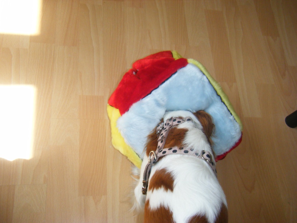 lotte hat geschrieben:ihr geliebter plüschwürfel mit 4 kleinen quietschbällen drin. rausholen, jagen, wieder reinstecken, wieder rausholen, jagen...... ;)