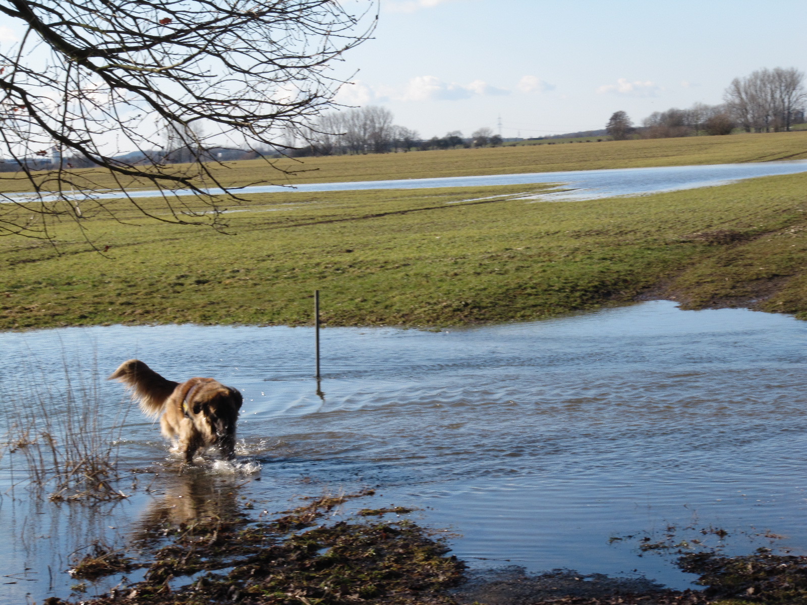 Bei uns stehen die Wiesen wegen des Weser-Hochwassers unter Wasser.