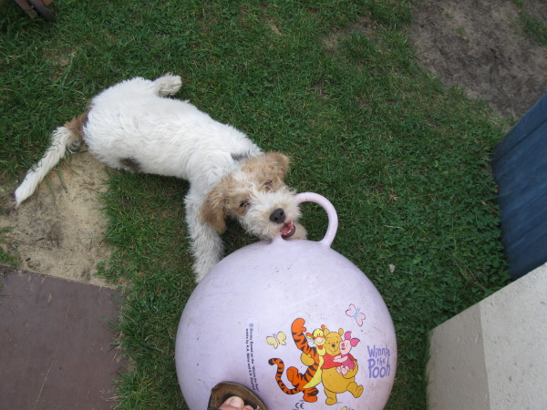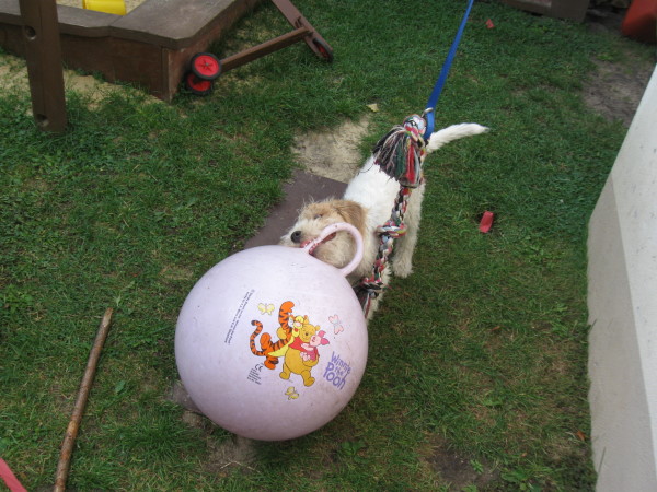 Re: LieblingsspielzeugIch glaub ich hatte ja schonmal berichtet, dass Rudi manchmal zum Größenwahn neigt. Im Garten macht sich das so bemerkbar: