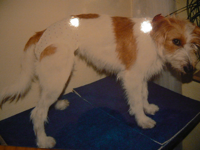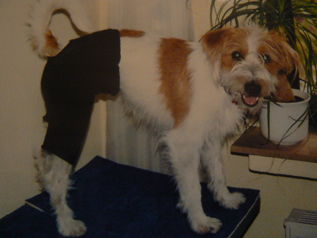 das mit der Läufigkeit bei Hündinnen haben wir ja auch. Blöd da wir ja fast überall Teppich haben. Somit mußten wir auch eine Lösung bezüglich des Tropfens finden. Habe da super Schlüpfer von befreundeter Züchterin bekommen. (3. Bild) . Damit das nicht so blöd aussieht gibts dann noch Strumpfhose drüber ausserdem Friermelt Akira sonst die Einlagen raus. (2. Bild) Und beim (1.Bild ) die Ausgeh-Variante. Waren bei der letzten Hitze zur Wohnungseinweihung eingeladen . Sieh war der Hingucker des Abends.