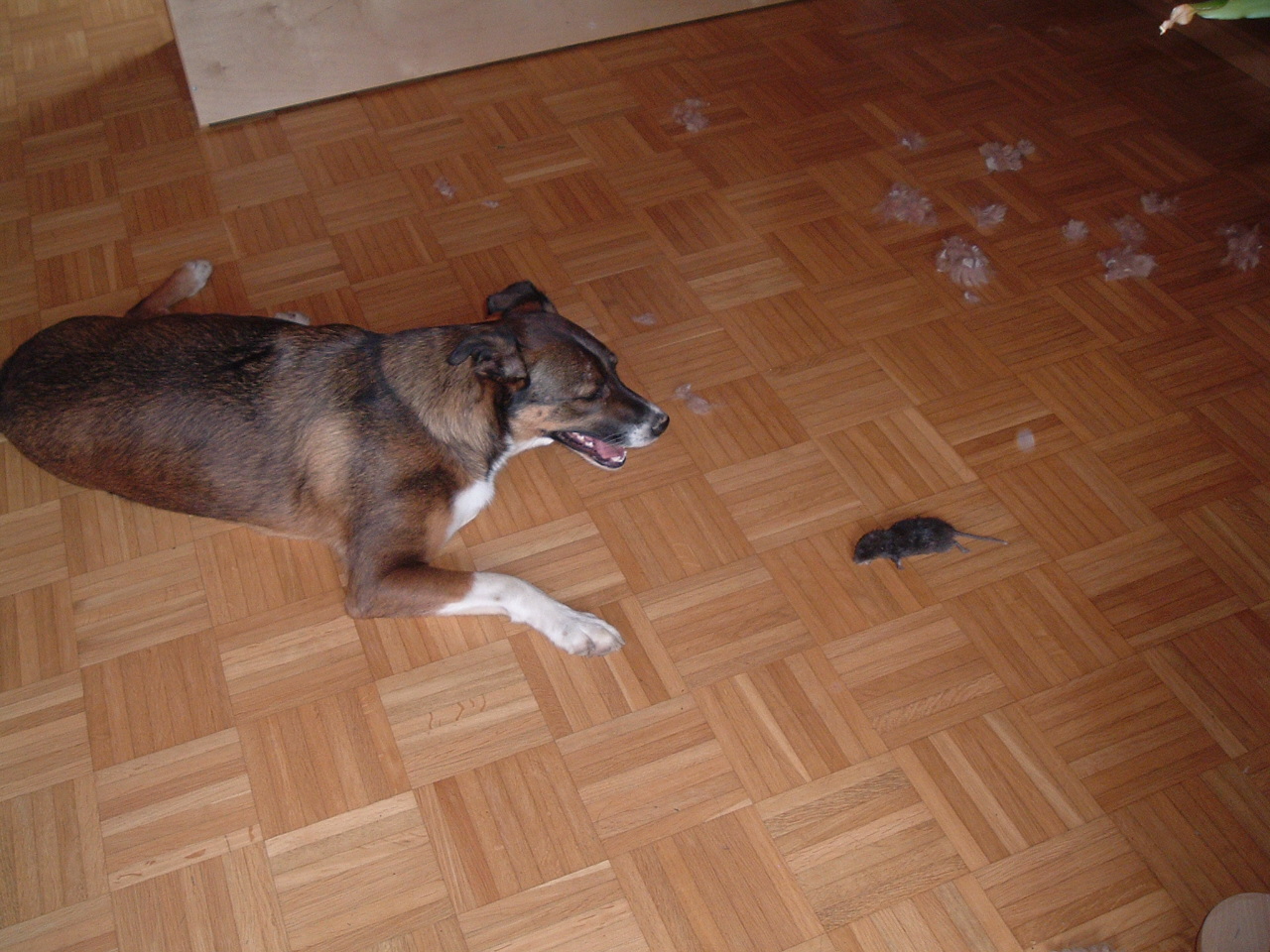 Re: Hude WettbewerbDas war eine große, große Wühlmaus aus dem Garten und er hat sie selbst erlegt!!!