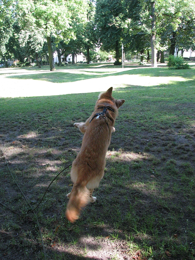 Man beachte die lässige Pfotenhaltung und das nach hinten schielende Auge!