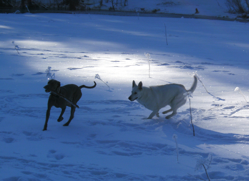 Bei der Überlegung wie das zu ändern wäre, fiel mir eine Hundebechäftigung ein, die ich bei Gudrun vor etwa 2 Jahren mal mit Snoopy ausprobieren durfte, und mit der ich damals bereits liebäugelte: Hundeschlitten fahren. Bzw. eben mit Rädern, ein Sacco-Cart z.B. oder ein Hadhi-Trike (http://www.hadhi-trike.de/). Damit wäre Snoopy in besagtem Park angeleint und hätte vermutlich durchaus Spass daran, und bekommt gleichzeitig Bewegung. Bei der (erlaubten) Hundewiese kann sie dann immernoch mit anderen Hunden rumtoben, nur dorthinzukommen und das nur an der Leine ist kein Vergnügen.