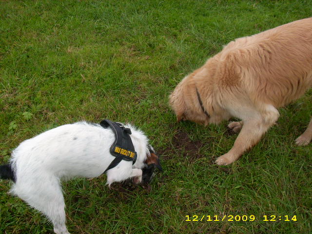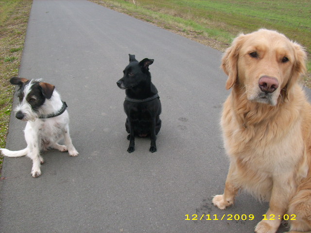 habe mich heute nachmittag im dorf mit meiner bekannten und deren rüden getroffen, wir waren zusammen mit den hunden spazieren. ;)