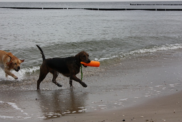 Bei meiner Ella haben sich Beagle und Golden Retriever gute Nacht gesagt.