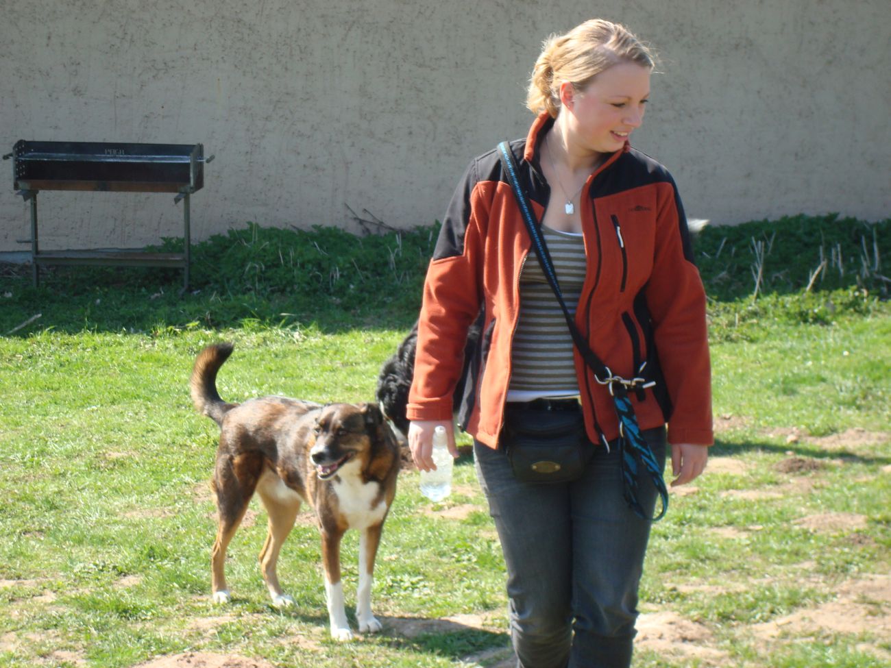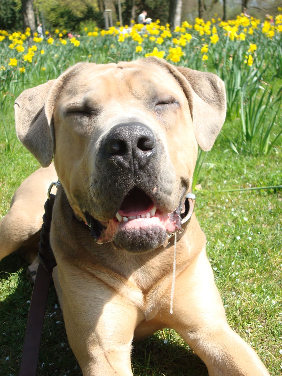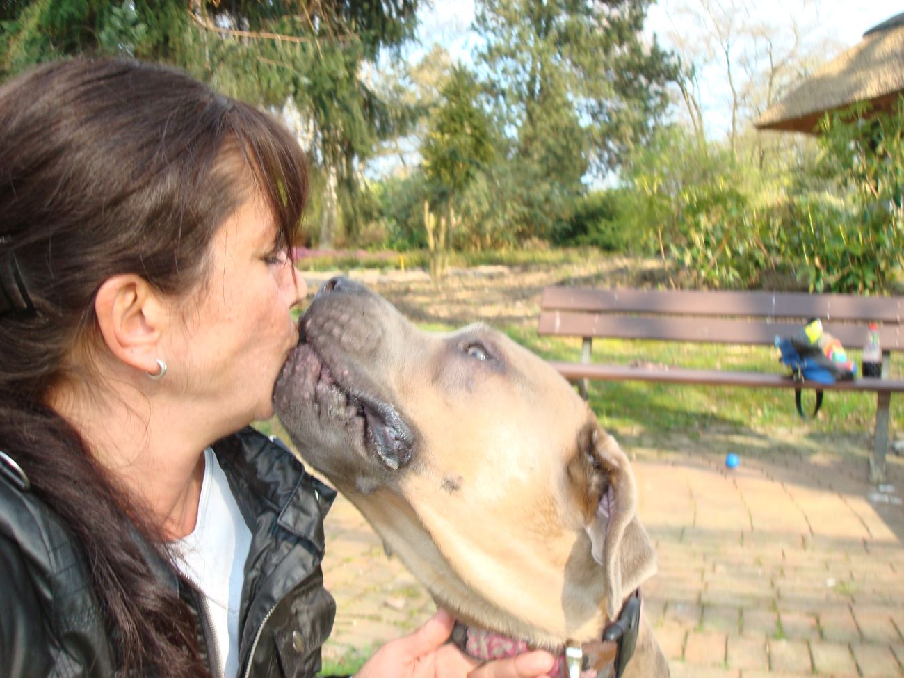 da ist mir das Isabel ja schon zuvor gekommen...tja, wenn man in Grasdorf lebt, hat man ja auch ´ne Menge Zeit, nicht war Isabel Da liegt der Hund ja sozusagen begraben für meine städtischen Verhältnisse Ja, weiß gar nicht womit ich anfangen soll... ...bin nachhaltig beeindruckt von Jenni´s Arbeit und Wissen. Bin ohne konkrete Vorstellungen dorthin gefahren. Das eine oder andere Manko gibt es schon zwischen Lennox und mir...dachte ich. Wir haben zunächst einmal an der Rockergrupper teilgenommen, in der ich auch Isabel mit Rocco und Claudia mit Logan "kennenlernen" durfte. Beide sehen aus wie auf den Bildern in "Foris im Bilde"....also nicht geschummelt Zunächst war ich ein wenig verunsichert, Ihr erinnert Euch, ich hatte berichtet, dass Lennox sich nun nichts mehr gefallen lässt und ich war gespannt darauf, wie er sich da mittendrin so verhält und was Jenni dazu zu sagen hat. Bevor das Ganze begann, hat mich Jenni auf einen Golden Retriever aufmerksam gemacht, der nicht s ganz einfach ist, also andere Hunde auch blöd anmacht...oje, dachte ich. Dann auch zwei Berner Sennen dabei...mir haben ein bißchen die Knie geschlottert ( ich bin ganz ehrlich ). Habe versucht, es mir nicht anmerken zu lassen. Zunächst einmal war Lennox sichtlich verunsichert, soviele neue Hunde. Er ist kaum von meiner Seite gewichen. Hat sich das ganze Treiben erst einmal aus der Ferne betrachtet, aus Mama´s sicherer Nähe. Hat dann gelegentlich einen Ausflug gewagt um den einen oder anderen Kollegen abzuchecken um sich dann aber wieder in sicherer Nähe von Mama zu begeben. Es hat eine Weile gedauert bis er die Lage für sich abgecheckt hat um dann eine besondere Sympathie für die Leonberger-Mix Hündin für sich zu entdecken und er mit ihr super schön gespielt hat, wie Ihr schön auf den Bildern erkennen könnt. Ab und zu kam da mal Jemand dazu, aber so wirkliches Interesse hatte er nur für diese hübsche Dame. Jenni´s Statement zum Sozialverhalten von Lennox: SUPER Sie sagte mir, da hätte ich wirklich ganze Arbeit geleistet. Lennox ist ein sehr gut sozialisierter Hund, der klasse mit anderen Hunde kommuniziert und überhaupt nicht auf Stress aus ist. Er steht schon seinen Mann, aber macht man ihn nicht doof an, macht er auch nicht doof an. Und ein großes Kompliment hat sie mir damit gemacht als sie mir sagte, würde ich in der Nähe wohnen, dürfte ich jede Woche so in die Rockergruppe kommen, da Lennox sich super dafür eignen würde...ist das nicht ein tolles Kompliment Nach der Rockergruppe hatten Lennox und ich ein bißchen Zeit uns zu erholen um uns dann anschließend mit Jenni zu einem Gespräch zu treffen. Wir haben uns nett auf die Terasse eines Lokals gesetzt, lecker gespeist und uns klasse unterhalten. Während der Unterhaltung waren unsere Hunde mit von der Partie. Lennox wie immer neben mir, so habe ich ihn bisher in solchen Situationen positioniert. So konnte Jenni live miterleben, welchen Molosserdickkopf mein Lennox hat. Ich weiß nicht wie oft ich meinen Lennox ins Platz habe versucht zu bringen und Jenni konnte verstehen, warum man Lennox nicht böse sein kann. Er saß neben mir und auf das Kommando PLATZ hat er mich mit einer Gelassenheit angesehen, dass ich des Öfteren schmunzeln muss, obwohl ich weiß, dass es falsch ist. Jenni hatte größtes Verständnis für mich und bewunderte mich in Bezug auf Geduld und ebenfalls Gelassenheit. Sie sagte, dass wir beide optimal zusammen passen, da Lennox so wahrscheinlich die richtige Erziehung genießt, also alles ganz ruhig und gelassen, ja so bin ich auch und werde auch gar nicht ungeduldig, was Lennox zu Gute kommt, so Jenni. Also, wäre ich ein Hund, dann sicher ein Molosser Sie meinte, dass sie um Einiges impulsiver wäre und nicht diese Geduld aufbringen würde, wie ich es tue, es aber in Lennox Fall genau das Richtige ist. War für mich sehr schön dieses Feedback zu bekommen, da es so den einen oder anderen Klugscheißer gibt, der meint, ich müsse mich richtig durchsetzen, ich wäre viel zu geduldig mit ihm. Aber wie bitteschön soll ich einen fast 50kg schweren Hund dazu bewegen PLATZ zu machen, wenn er es nicht tut ?? Ihn ins PLATZ drücken? Mir bleibt nur, ihn konsequent immer wieder daran zu erinnern, was ich von ihm möchte...und das mache ich, ebenso gelassen wie mein Lennox Jenni hat mir ausführlich das Ampelsystem erklärt und wir haben es mit Lennox in die Praxis umgesetzt. Ich war beeindruckt, wie super gut das funktioniert. Das wird in Zukunft meine Methode sein, um von Lennox das zu bekommen, was ich von ihm möchte. Das schönste Kompliment hat mirJenni damit gemacht, dass sie mir sagte; in dreizehn Jahren wären ihr nur für eine Hand ausreichend Molosser-Mensch Team begegnet, zwischen denen die Beziehung so gut ist wie zwischen Lennox und mir. Die Beziehung zwischen Lennox und mir ist so gut und er möchte seiner "Mama" einfach nur gefallen. Man würde merken, dass ich in Bezug auf Lennox vieles intuitiv machen würde und es das Richtige wäre. Ich solle mich auch in Zukunft auf mein Bauchgefühl verlassen, weil dies gut wäre, dies würde man an Lennox sehen. Ich kann sagen, dass der Besuch bei Jenni richtig lohnenswert war. Sie hat mir ein Gefühl von Sicherheit gegeben, was ich dringend brauchte nach der derzeitigen Entwicklung von Lennox. Lennox ist mein erster Hund und ich mache natürlich Vieles aus dem Bauch heraus. Das es richtig ist, hat mir Jenni nun bestätigt und das tut mir unglaublich gut. Also mache ich genauso weiter und fühle mich einfach total gut nach diesem Weekend Allein für die tollen Bilder, die sie hat machen lassen, hat sich der Besuch schon gelohnt....klasse Bilder Isabel hat ja schon einige hier rein gestellt, danke an dieser Stelle....werde mal schauen, ob ich noch das eine oder andere Bild mit hier rein tue. Muss erst mal schauen, sind sooooo viele Schade, dass Jenni nicht mehr hier ist, hoffe aber, dass ich Alles richtig wiedergegeben und nichts verdreht habe. Ich kann nur jedem 