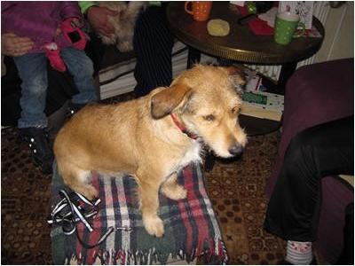 Unsere Fast-Zweit-Hündin... tja großes Rätselraten, vermutl. Terrier-Dackel-Mix... die krummen Beinchen vom Dackel und das stuppige Fell und den Kopf vom Terrier. Ich such mal nen Foto raus ;)