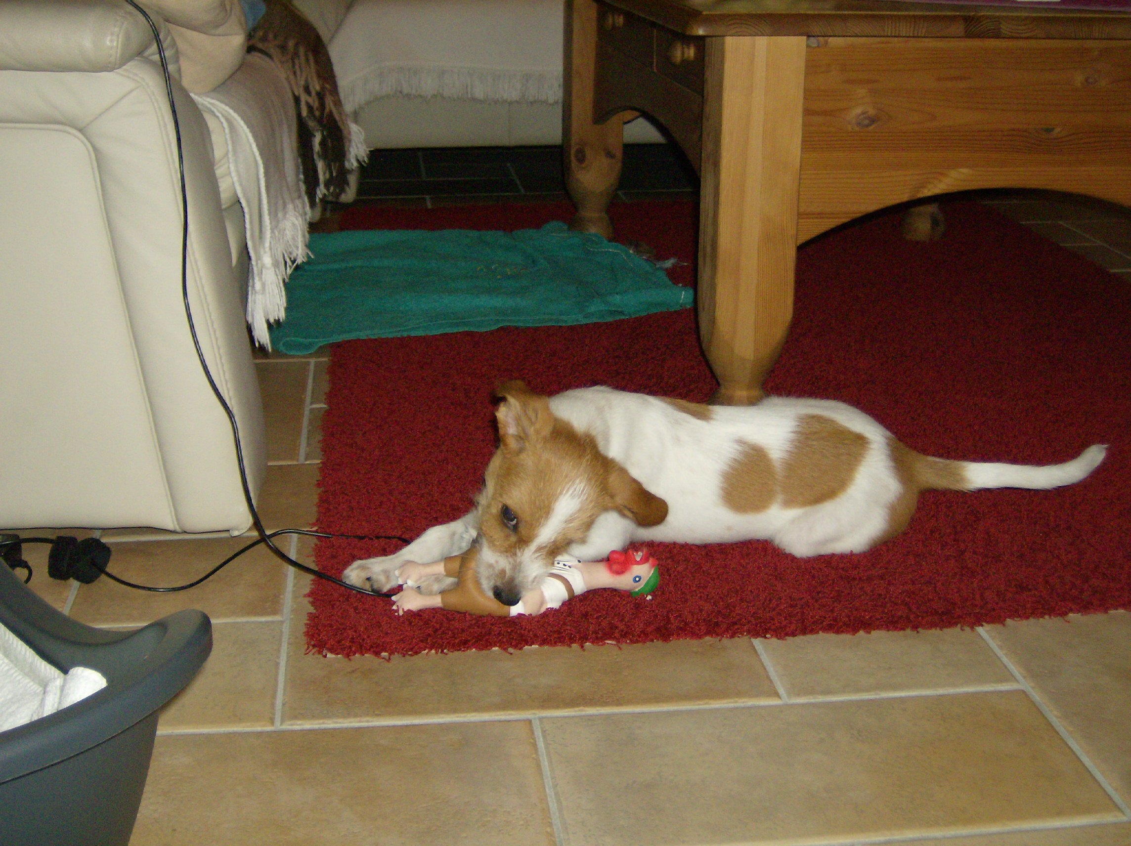 Stimmt, Ari ist schon gut gewachsen... Die Kabel haben wir gut im Blick, bis jetzt hat er nicht einmal versucht, diese Schlangen anzuknabbern. Und wenn er es auch nur versucht, haben wir die Klapperdose parat... ;) Das Kabel vom Staubsauger ist ihm eh' nicht geheuer und falls er mal allein bleiben muss, ist gar kein Kabel in seinem Aufenthaltsbereich zu finden.