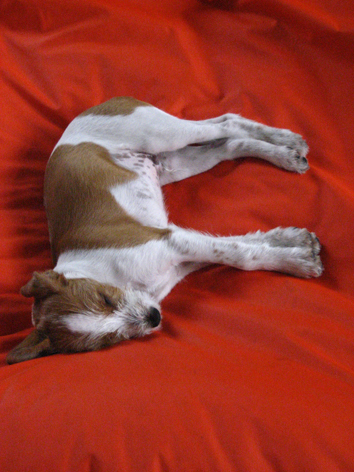 Tja wenn ich das so alles lese, dann klingt das alles ganz nach unserem kleinen (großen 7,5 kg) Anton. Der frisst auch wie ein Scheunendrescher, hat auch eine Vorliebe für Hosenbeine und Ärmel und macht uns viel Freude. Aber die Beißerei ist schon viel besser, nachdem hauptsächlich Jan das auf hündische Weise ausdiskutiert hat. Ich schick mal kein Bild von seinen Händen. Im Moment schmatzt er im Schlaf, hm hat wohl immernoch Hunger. Das Wetter in Hamburg ist leider echt mies, kalt Nieselregen und allgemein ungemütlich, aber wir werden heut trotzdem unseren Fahrradanhänger testen und zum Deich fahren. Die Welpenschule bringt uns allen auch viel Spaß. Anton hat jetzt gleichwertige Spielgefährten in der Terriersparte (Parson und Lakeland Terrier) gefunden. Unsre Hundetrainerin bricht sich immer fast die Zunge ab und nennt unseren Kromi immer den Terrierähnlichen. Aber das stimmt ja auch, er benimmt sich wie einer. Mal schauen ob er heute mal professionel vor der Kamera steht, müßten mal neue Bilder auf seine Seite. Viele Grüße aus dem trüben Hamburg!