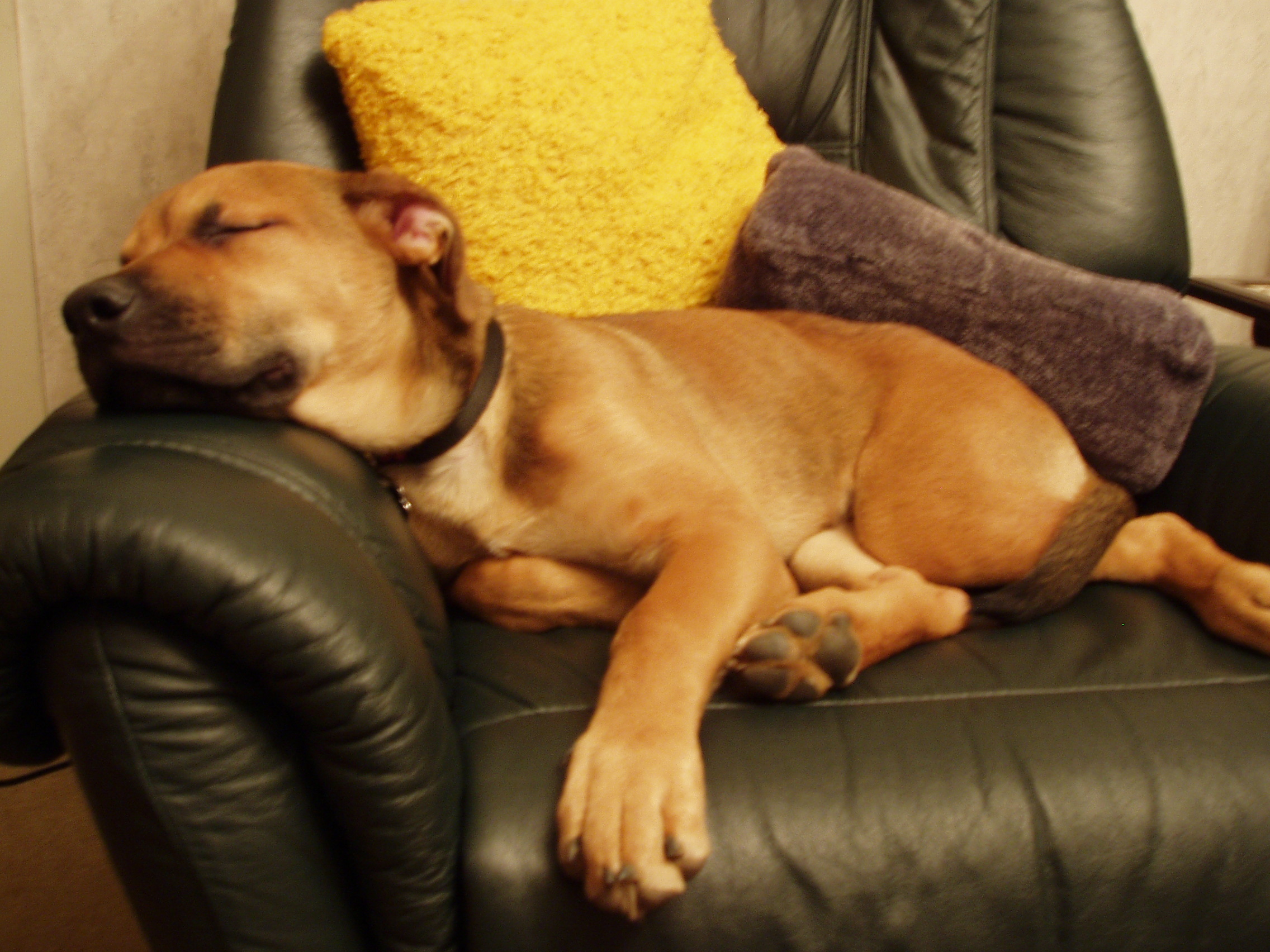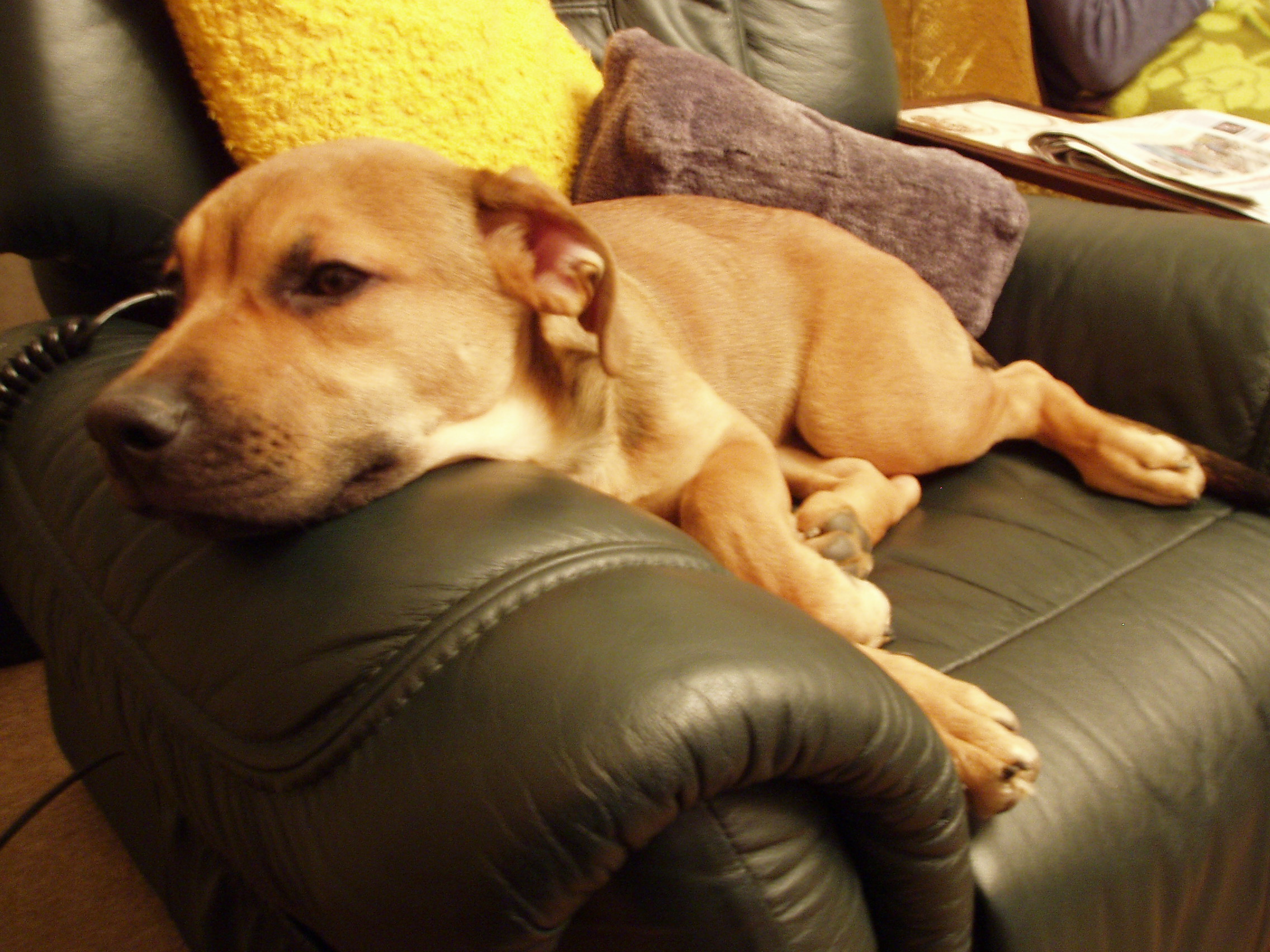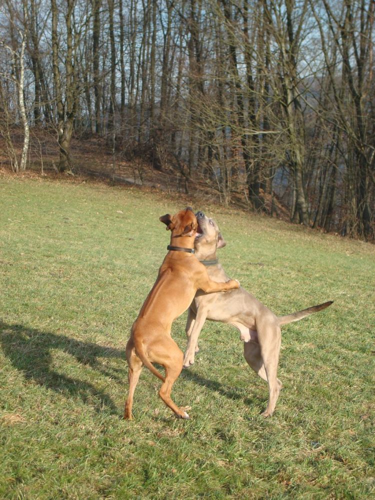Menno, GENAU DAS GLEICHE wollte ich auch schreiben, Marion. Du doof! Ich hätte eher an einen AmStaff-Mix gedacht. Genau meine Geschmacksrichtung, die Dame. 8-)