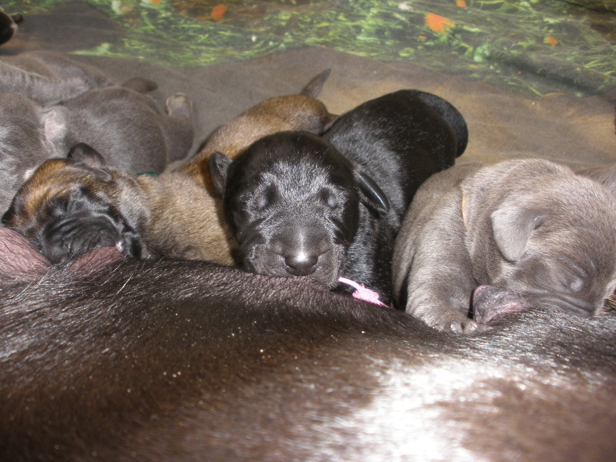 Habe heute mit meiner Freundin während der Hunderunde darüber nachgedacht, wie man wohl per Ultraschall feststellen kann, dass es Welpen von zwei Tagen sind Nun wäre das ja geklärt und wir warten einfach die Zeit ab Lennox, Balu und Paige bringen halt alle eine Vielfalt an Genen mit, die, wie Marion schon schrieb, viele Möglichkeiten bieten. Ja Marion, Lennox ist ein Mischling, empfinde ich keineswegs als Abwertung...ganz im Gegenteil, wenn man mich nach seiner Rasse fragt antworte ich meistens der einfachheitshalber eh es sei ein Mischling, weil ich es müde geworden bin zu erklären was es mit der Antikdogge auf sich hat. Gehöre nicht zu der Spezi Mensch, die besonderen Wert darauf legen zu betonen einen "Rassehund" zu haben. Kürzlich habe ich Jemandem sogar geantwortet auf die Frage welche Rassen da denn drin wären ( ich war genervt an dem Tag und es war NICHT Johnny Depp Komisch Und wenn man es genau nimmt sind ALLE Hunde Mischlinge Nun, da ist mir Frau Korinna zuvor gekommen Es ist verdammt schwer sich überhaupt für einen zu entscheiden, weil sie sind wirklich alle ausnahmslos zum Verlieben. In Ludwig habe ich mich besonders verliebt, weil er, so wie Korinna sagt, ganz gemütlich ist. Ich habe es auch gesehen als ich da war. Und mir gefällt die Farbe so gut von ihm und er hat auch so ein herrliches Knautschgesicht Hach mein Herzchen hüpft gerade wieder wenn ich davon schreibe Also ganz fest habe ich mich noch nicht entschieden, ich ringe mit mir. Und auch muss ich Andreas davon überzeugen, der schon ahnt, dass ich damit liebäugel und gar nicht begeistert ist Es gilt Überzeugungsarbeit zu leisten und auch ich muss es mir noch mal in Ruhe überlegen. Natürlich sagt mein Herzchen JA aber ich muss auch vernünftiger Weise alles Für und Wider abwägen. Es soll schließlich eine Entscheidung für ein ganzes Hundeleben sein und entsprechend mache ich mir meine Gedanken dazu. Das Alter von Lennox wäre jetzt okay, aber da gibt es noch eine Menge mehr Dinge zu berücksichtigen, was ich Euch Allen nicht erklären muss Aber ich verspreche Euch, wenn ich mich dann 100% für Ludwig entschieden habe, werdet Ihr es garantiert mit als Erstes erfahren Grüßchen, Chrissi