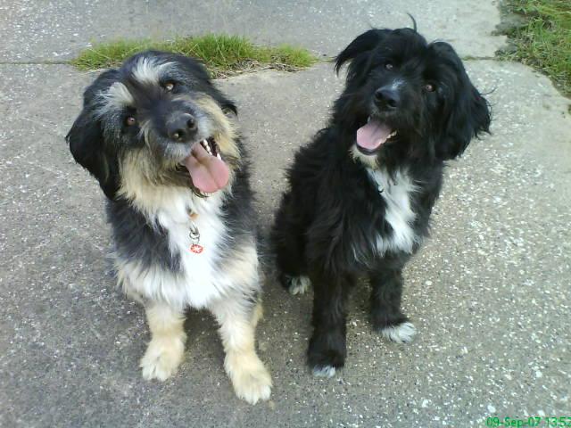 2006 kam Bottomnose zu mir damals war er knapp ein Jahr alt und das alles war irgendwie seltsam!! Wer sich mit dem Züchten ein wenig auskennt, wird vielleicht sagen, dass es ja irgendwie ein bißchen früh war, den einjährigen Bottomnose schon decken zu lassen. Aber Bottomnose war ein nicht ganz alltäglicher Hund. Bottomnose ist aus dem 2. Wurf der Briardzüchterin, ich nenne sie mal Sabine. Sabine war schon von der ersten Minute an angetan von diesem Hund und als ob sie es geahnt hätte, war Bottomnose intelligent. Und so entschloss sie sich mit ihm alles was nötig ist durchzuziehen, damit sie mit ihm züchten kann. Was man davon hält... Naja, nach seinem ersten Decksprung viel ihr auf, dass Bottomnose sich ihr gegenüber veränderte. Er zeigte ihr die Zähne, wenn sie ihn anfassen wollte, wenn sie in die Nähe seines Futters kam usw. usw. Sie fand das noch ganz lustig. Dann besuchte sie wieder mal eine Hundestunde. Bottomnose verhielt sich normal - nach ihren Beschreibungen - dann wurden die Leinen losgemacht und Bottomnose stürzte sich auf einen Yorkirüden. Es brauchte genau ein Sekunde, um den Rüden zu töten. Danach wollte er auf einen Tibet Terriermix, da war dann wohl die Trainerin da und konnte schlimmeres verhindern, wurde allerdings selbst schwer verletzt. Von dem Moment an, machte Bottomnose an der Leine alles an. Er bekam einen Maulkorb und es sollte trainiert werden. Die Trainerin entschloss sich, größere unkastrierte Rüden zu nehmen, die Bottomnose aber nicht interessierten. Er spielte mit ihnen, wie eh und je. Dann holte die Trainerin ihren Bouvier mit dazu. Ein unkastrierter Rüde und es krachte gewaltig! Bottomnose schaffte es sich den Maulkorb von der Schnauze zu ziehen und bis alle das registriert hatten, hatten die beiden sich schon böse in den Flicken! Besagte Hundetrainerin rief mich Abends an und erklärte mir, was los war und dass Sabine noch im gleichen Moment mit Bottomnose zum TA gehen wollte, um ihn einschläfern zu lassen. Sie fragte, ob ich eine Idee hätte. Ich setzte mich mit der Züchterin in Verbindung, die meinte, ich könne ihn geschenkt haben, müsse ihr aber unterschreiben, dass ich mir bewußt bin, was das für eine Killermaschine sei. Ich erfüllte ihr ihren Wunsch und holte ihn ab. Von mir wurde er erstmal die erste Woche komplett ignoriert. Er Futter aus der Hand und das auch weniger als die anderen. Ich paßte ihm einen Maulkorb an und fing an mit ihm in Takis Nähe zu arbeiten, aber immer mit "Netz und doppeltem Boden". Er fuhr zwei heftige Attacken, die dazu führten, dass ich ihn mit einem großen Rums auf die Seite legte und dort musste er beim zweiten Mal 20 Minuten liegen bleiben und durfte sich nicht bewegen. Das war der Moment, wo ich zumindest mal gesiegt hatte. Er folgte mir auf Schritt und Tritt und solange ich dabei war, war es kein Problem, dass auch Takis in der Nähe war. Das trainierten wir bestimmt ein halbes Jahr. Dann musste ich irgendwann ja mal dahin kommen, dass die beiden auch zusammen laufen können und ich startete meinen Versuch. Bottomnose und Takis wurden beide gesichert (wenn Takis merkt, dass es ein Ernstkampf für den anderen ist, würde ich nicht die Hand dafür ins Feuer legen, dass er nicht auch bis zum Äußersten geht). Wir waren zu viert in der Nähe, ich brachte beide in ein abgetrenntes kleineres Gelände und ging. Bottomnose stand am Zaun und wimmerte hinter mir her. Dann nahm Takis Kontakt auf und sie umkreisten sich und dann passierte, was ich gehofft hatte. Bottomnose zeigte Demutsverhalten wie ein Großer und Takis nahm es an. Seitdem sind die beiden die besten Freunde und ich kann Bottomnose mit jedem Rüden laufen lassen. Solange wie ich dabei bin, macht er seine Sache als sehr souveräner Rüde wirklich gut, der zudem auch noch toll mit Menschen und besonders mit Kindern ist. Die Züchterin wollte ihn auch schon wieder haben. Aber wir haben ja einen Vertrag!! Lieber Gruß Alexandra