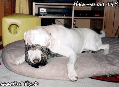wo der große am kleinen knabbert ist ja so niedlich, wie der das bein im mund hat und den ganzen hund haben könnte .. :roll: und das letzte filmchen ist süß wo sie zusammen rein gehen hihi oooh :mrgreen: