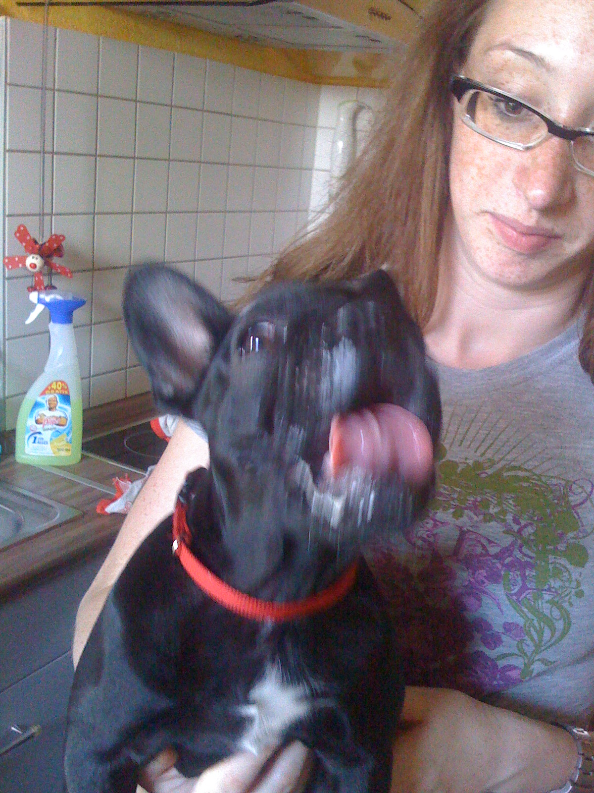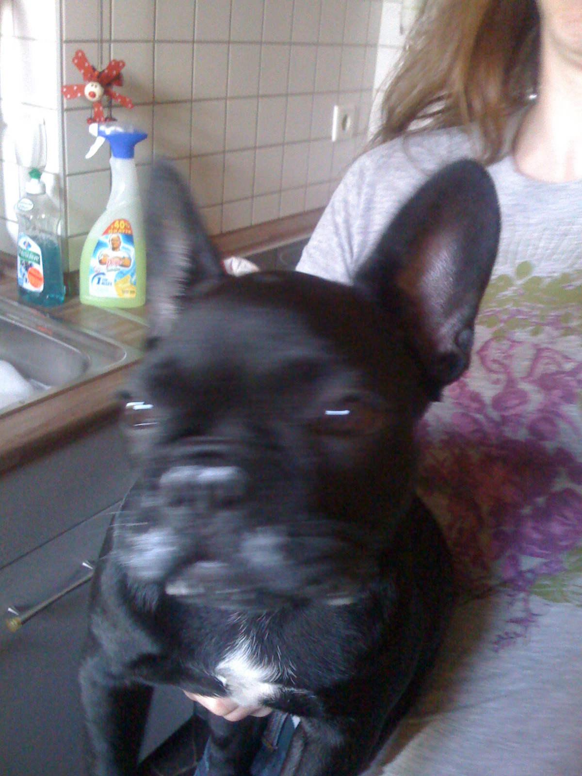Lennox will auch immer noch auf den Schoss ...das klappt nur nicht mehr, Stuhl droht zusammen zu klappen, zusammen haben wir jetzt gewichtsmäßig die Hundertmarke geknackt :lol: