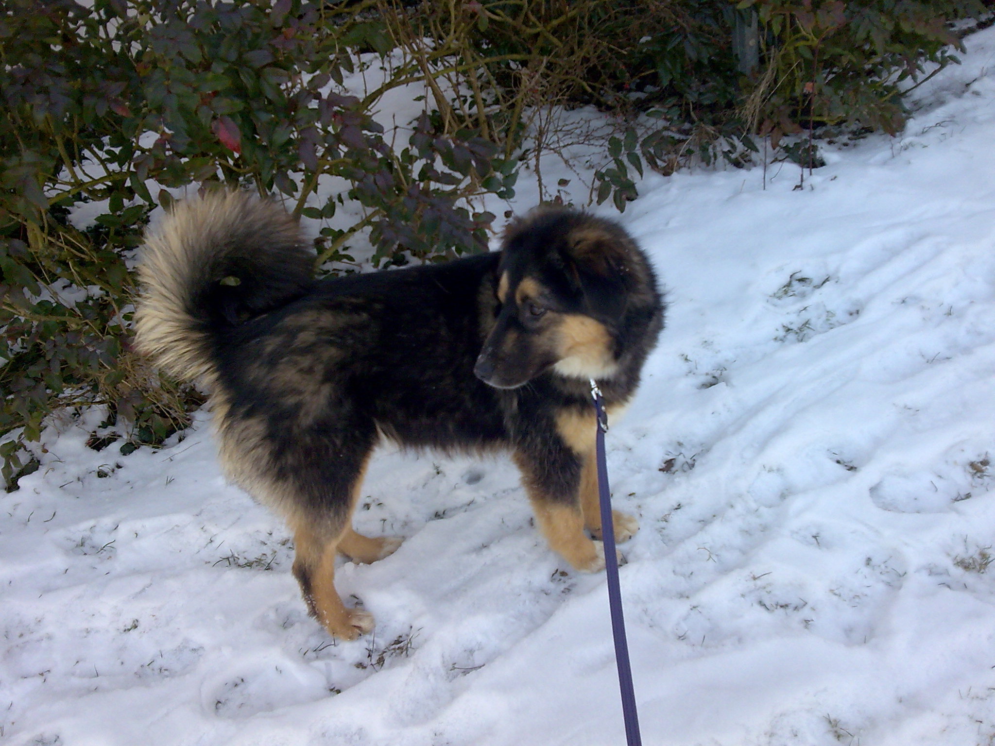 draußen waren wir auch schon 2 mal, haben es aber noch nicht zu einem geschäftchen geschafft, ist wohl alles noch zu aufregend. bei dem ganzen schnee kann ja auch niemand ahnen, wo man hinmachen soll.