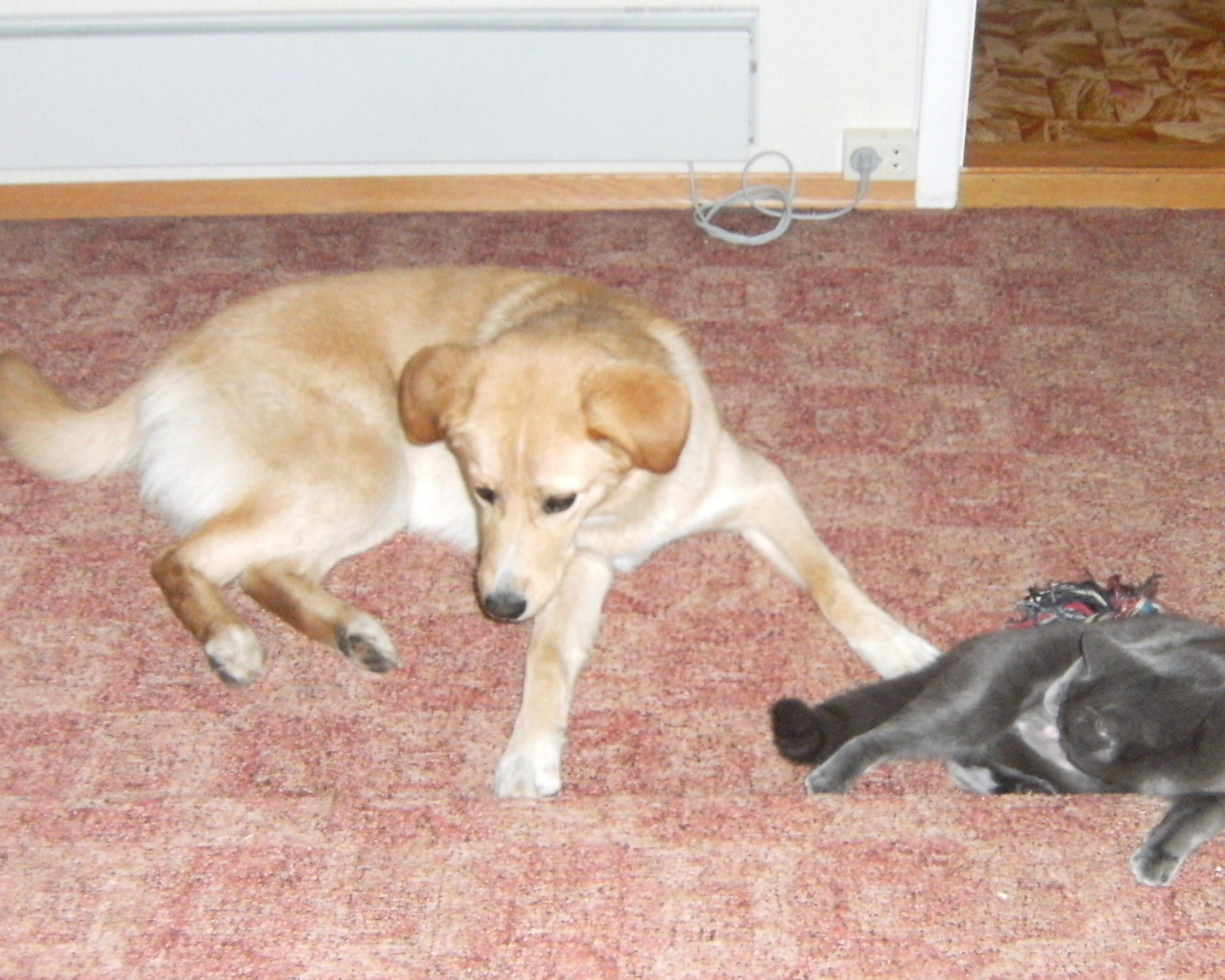 Kein Wunder, bei fast 30 kg Lebendgewicht Danke für die Komplimente. Die Katze hat auch noch eine Schwester, sind auch erst 7 Monate alt und ich bin so froh, das sich die drei so gut zusammen gerauft haben. LG, Kirsten.