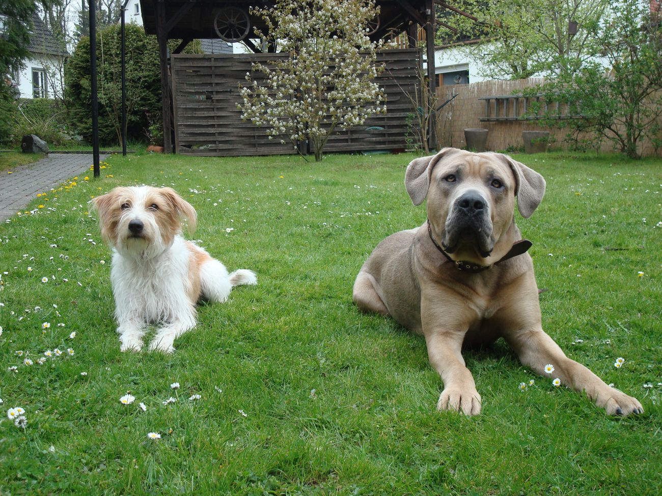 Glaub Lennox war Toby ein bisschen unheimlich, er also Toby, hat sich gar nicht wirklich an Lennox ran getraut.... am Anfang mal geschnueffelt und das wars... Dafuer hat er aber Akira geaergert Die ihn dann einmal die Leviten gelesen hat, da hat er dann kurz so geschaut und weiter gings