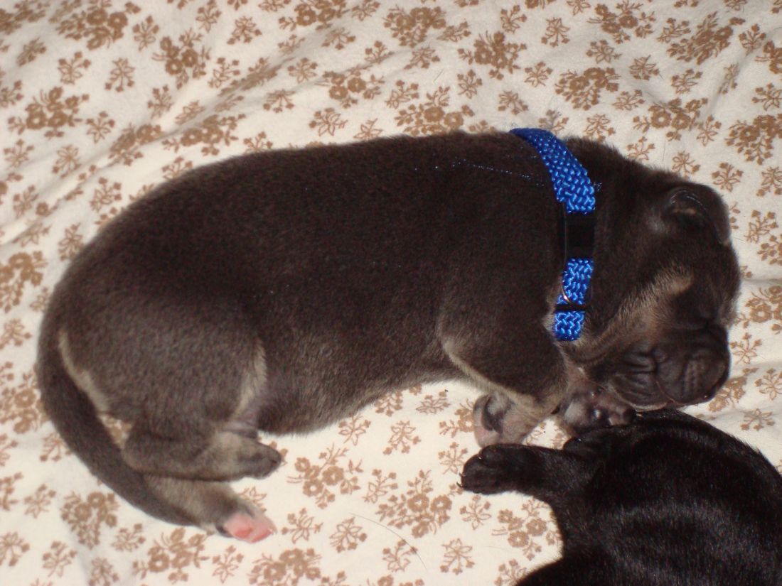 Spike --------blaues Halsband--------grauer Hund