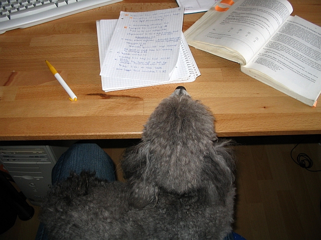 Links liegt Mäxchen, der kleine graue im Hintergrund ist Einstein und den Namen der Hündin rechts vorne weiß ich leider nicht mehr. War ja auch eine kleine Zicke ;)