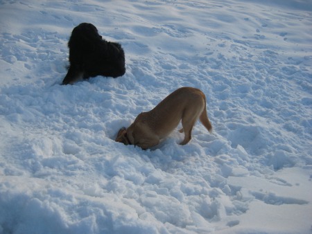 Re: meine zwei mädelsaktuelle bilder, gerade heut morgen beim gassi gehen mit meiner besten freundinn,und ihrer neufi-horovart mix hündinn "kira" entstanden
