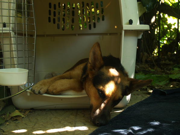 Hm, ist wohl die chilenische Spezialliegeposition, oder? Die Hüttenpläne sind zur Zeit erst im Kopf vorhanden - wenn ich dann in Deutschland ausmessen kann geht's ans eingemachte. Ich habe mir gedacht damit eine Rückzugsmöglichkeit im Garten geben zu können, in der sie auch mal übernachten kann wenn sie will. Sie soll nur im hinteren Garten ohne Aufsicht sein dürfen, vorne ist der Zaun zur Strasse, Carport, Hoftor...das soll Tabu sein. Obwohl ich da noch am schwanken bin, was den hinteren Teil betrifft weil dort auch der Pool ist. Der wird auch Tabu sein, sonst springt sie mal im Winter rein und fällt in den leeren Pool. Hoffe ich bekomme beides erzieherisch hin. Ansonsten gibt's Garten nur mit Aufsicht, bzw "Begleitperson". Ui, gestern Abend beim Nachtspaziergang hat Mini eine Katze gesehen und vorbildlich vorgestanden. Rechte Vorderpfote hoch, und eine horizontale Linie von Schwanzspitze bis Nase... Ist also doch ein kleiner Jagdhund mit drin. Oh Gott, da muss ich mir ja noch mehr Gedanken um Auslastung machen
