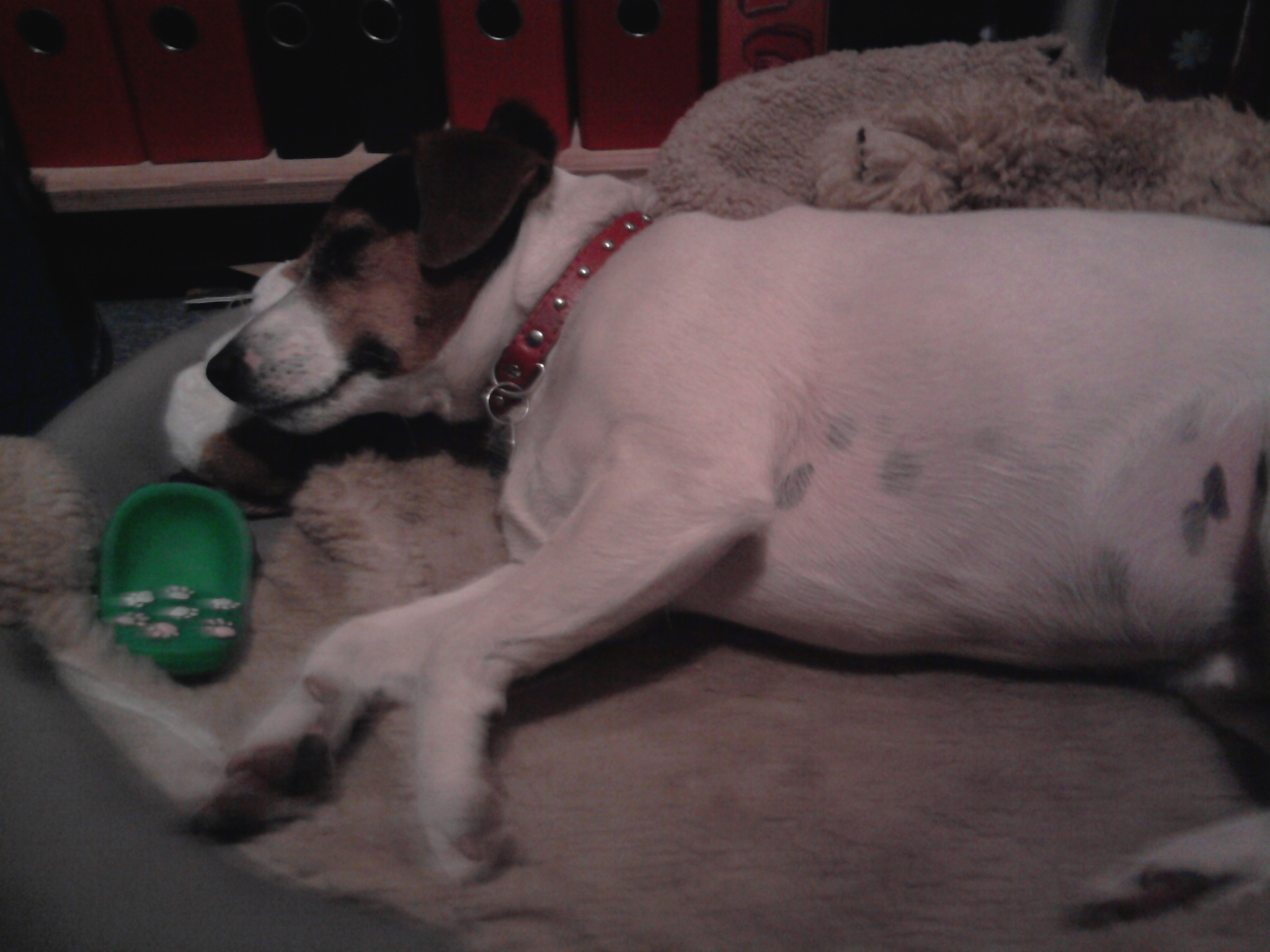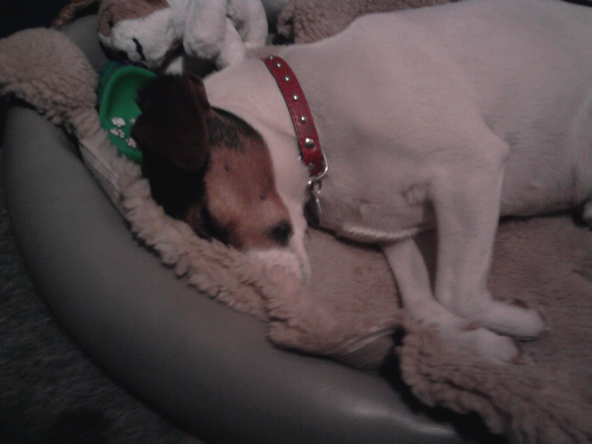 z.B. bilder, wo ich langeweile hatte und idefix beim schlafen erwischt habe ich warte auf euren süßen hunde!!