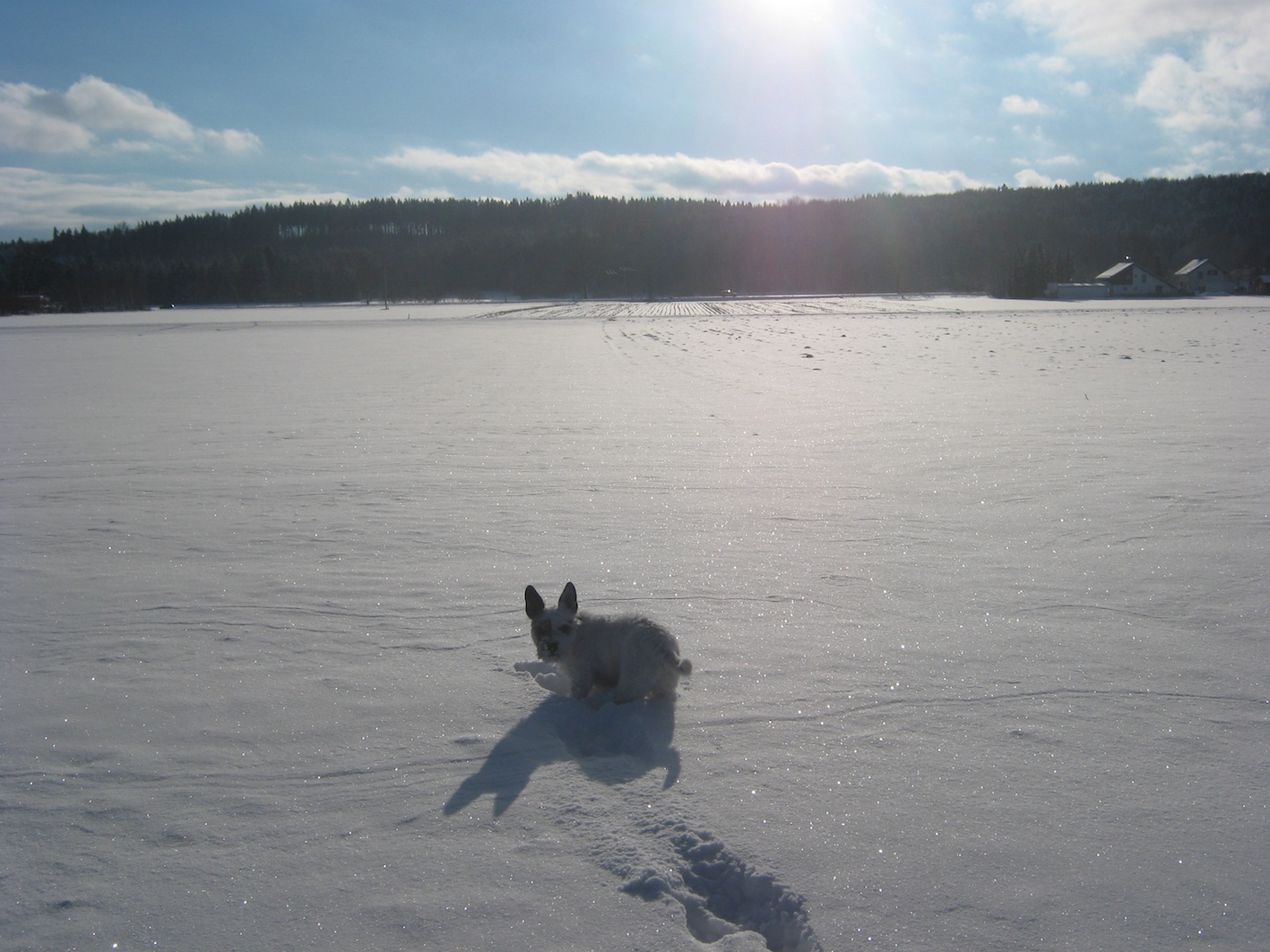 wir hatten bis Freitag kniehohen Schnee, dann regnete es das ganze Wochenende und der Schnee war futsch Plötzlich erbahmte sich Frau Holle eben wieder mit uns hier und nun liegen wieder 15cm Neuschnee! Wenn mirgen die Sonne scheint, ist Sabse mit Caya, Achilles und ihrer Canon im Feld zu finden!
