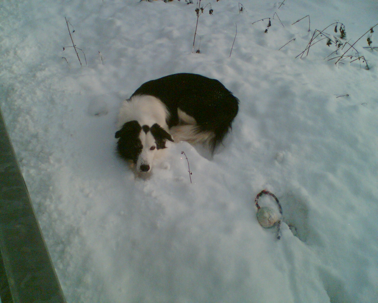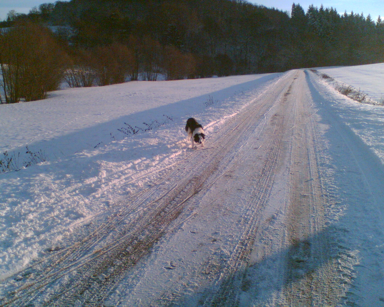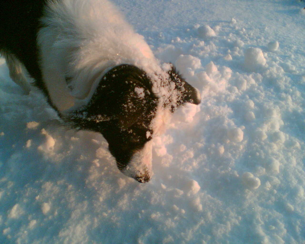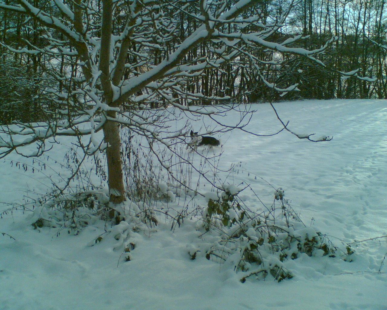 So, auch ich habe wieder mit dem Handy ein paar Schnappschüsse von Jerry im Schnee heute gemacht.