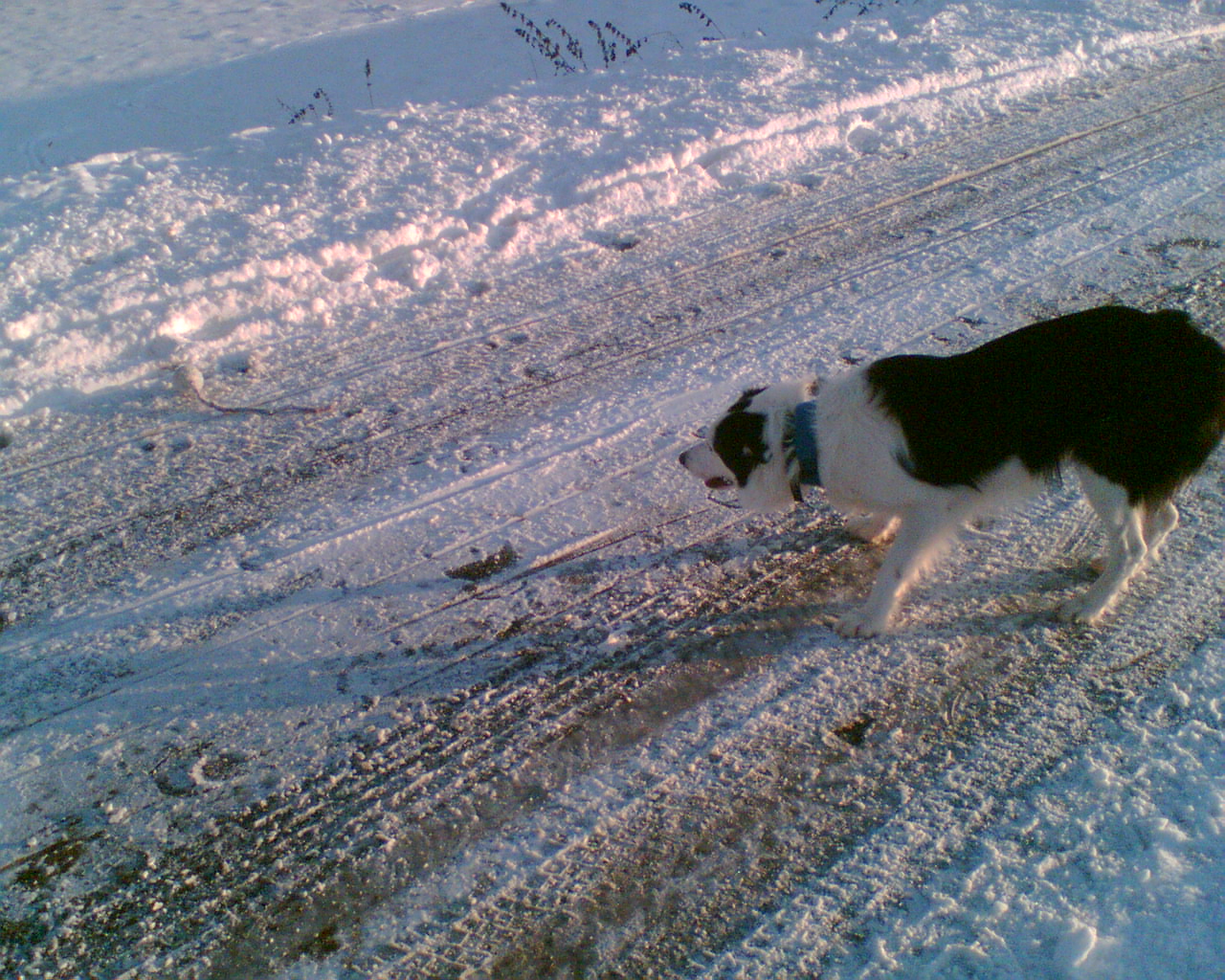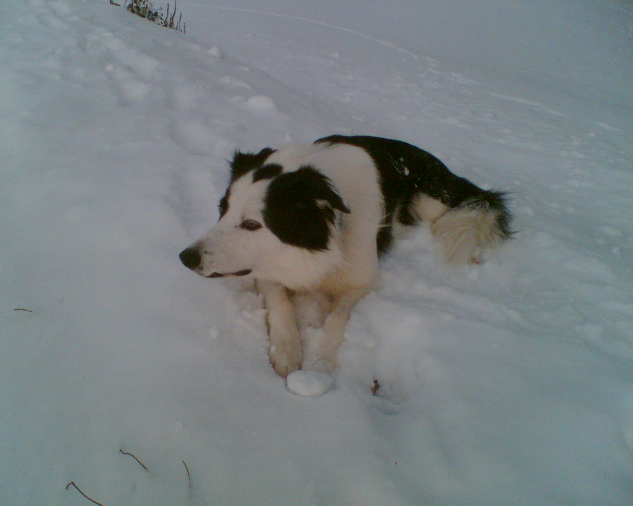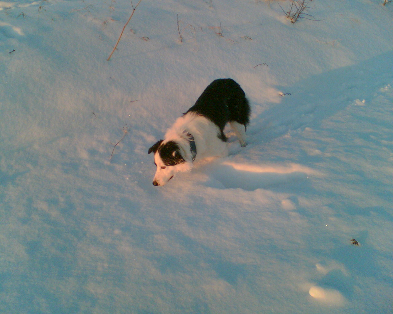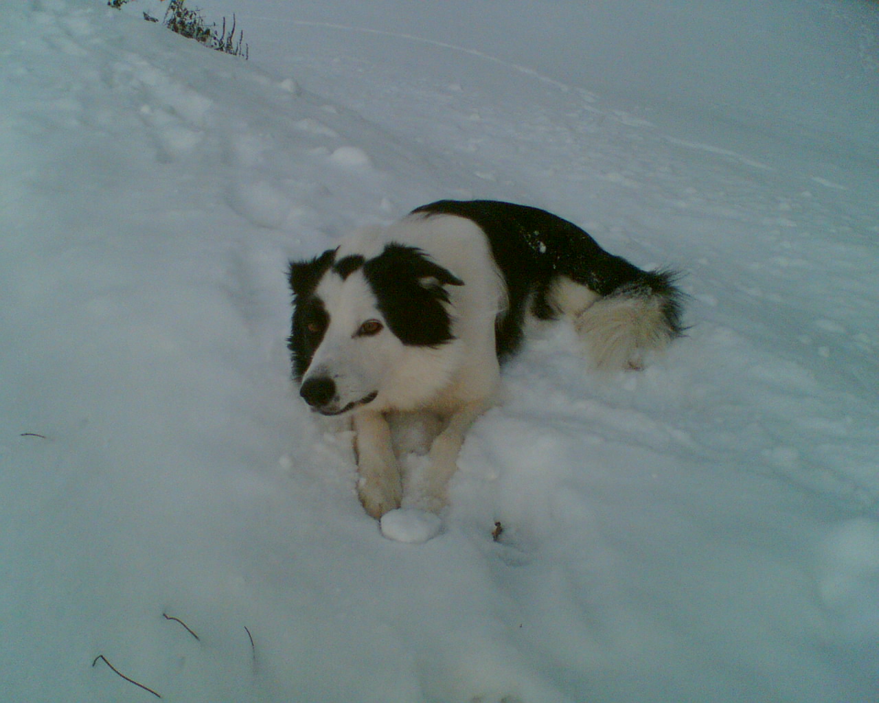 So, auch ich habe wieder mit dem Handy ein paar Schnappschüsse von Jerry im Schnee heute gemacht.