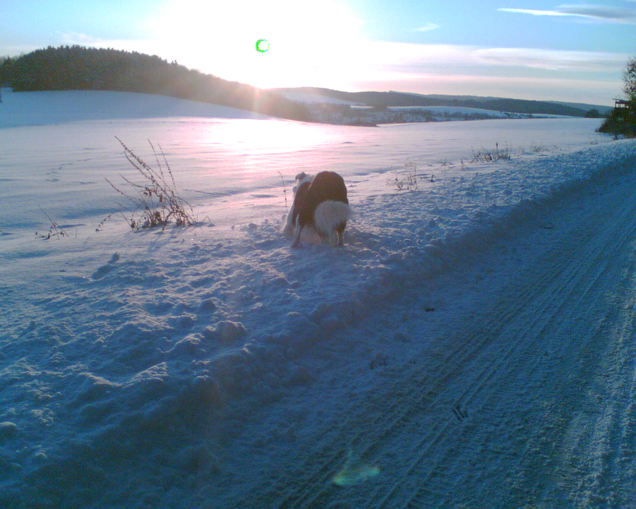 Jerry im SchneeSo, auch ich habe wieder mit dem Handy ein paar Schnappschüsse von Jerry im Schnee heute gemacht.
