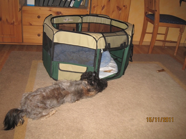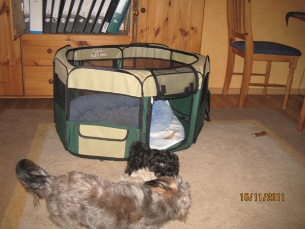 Kein Häufchen und Pfützchen bis jetzt im Haus. Nachts kommt sie zwei Mal. Ich hab sie in der Box. Die erste Nacht war schlimm - nur gejaule. Aber gestern zu heute war schon besser. Kurz Protest - Hand rein - hingelegt und geschlafen. Gefiept - raus - pullern - rein - kurz gefipt - schlafen ....