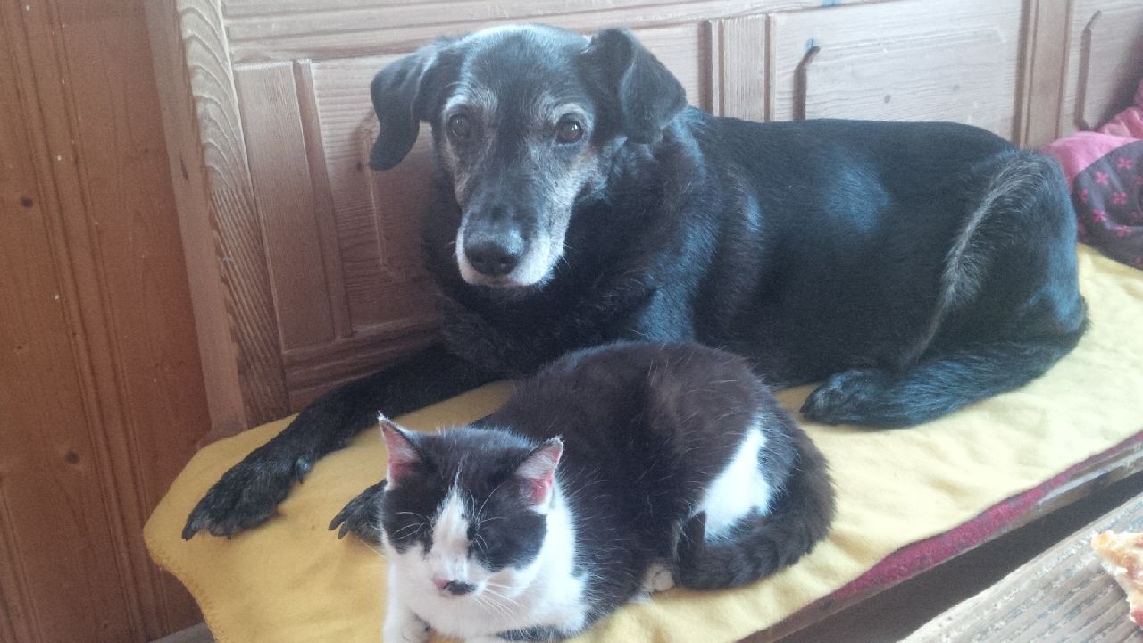 Sieht ja knuffig aus, wie Hund und Katze so einträchtig nebeneinander liegen...