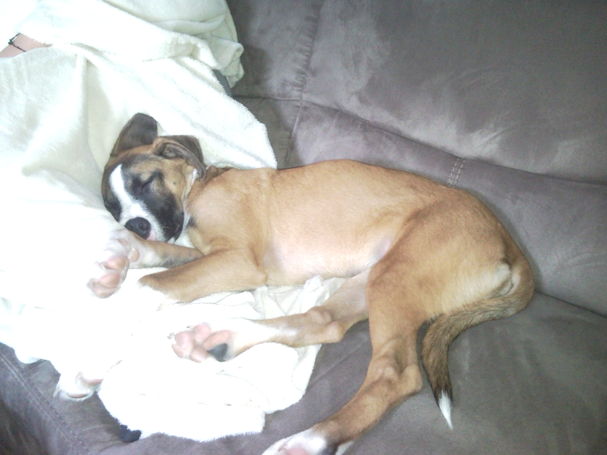 Hoffe da kommen noch ca. 10 cm rauf der Papa ist ja schließlich ein stattlicher Malinois :) und die mama war auch keine kleine Hündin für ne StaffHündin war bzw ist Sie sehr groß geraten :)
