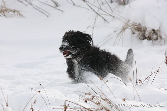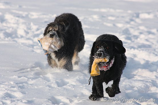 an meinen wuffels bleibt der schnee gar nicht hängen. sobald die sich bewegen rieselt er runter.