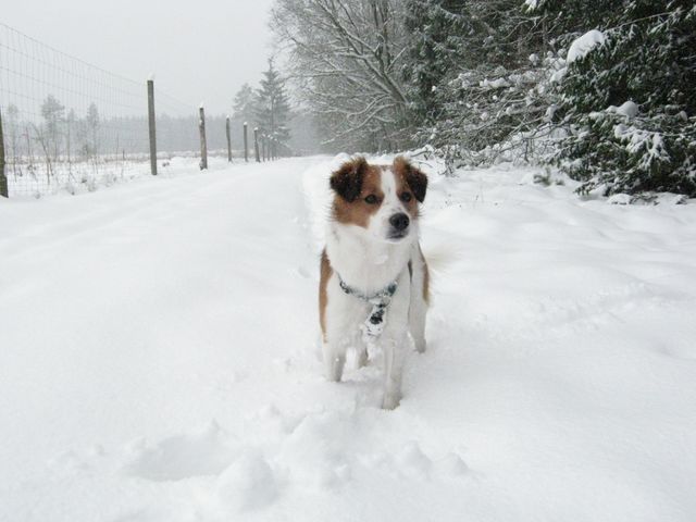 Re: Schnee, Sonne und Hund!So, ich muss mal feststellen: ICH HABE KEINEN BOCK MEHR AUF SCHNEE! Heute morgen hat es schon wieder geschneit. Dicke, langsame Watteflocken. An sich fände ich die total schön, wenn nicht inzwischen schon seit gefühlten 2 Monaten dieses weiße Zeug hier läge. Die Eisschicht unten drunter ist echt übel, so dass es mich heute morgen schon wieder fast von den Beinen geholt hätte. Nur im Wald ist die Schneehölle noch genießbar...