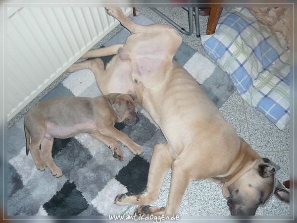 Ich glaub wir haben im Nachbarort auch eine Antikdogge. Bin mir nicht ganz sicher und konnte leider nicht fragen, weil ich im Auto war und der/die Schöne nur vorbeilief und auch noch in einen Hof einbog, ich war schon dran mich aus dem Auto zu stürzen um zu fragen :P :P