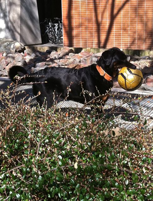 zufriedene hundis, halb platten ball......