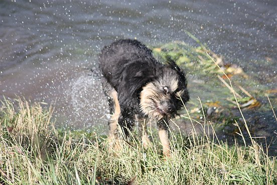 @Tosa, sie waren noch nie nur ausgedünnt! Das habe ich noch nie gemacht. Normalerweise werden sie mit der Schere so auf zwei bis drei Finger breit gestutzt. Heute habe ich mich entschlossen sie scheren zu lassen. Erstens weils hier momentan sooooo viele Kletten gibt und sie die einsammeln, als wärs ihr Job und ich langsam etwas genervt war von der Ausbürsterei - und ich glaube die beiden auch. Und dann weils einfach soooooo heiß ist, sie aber andererseits doch recht lange zum Trocknen brauchen und ich hier schon Anflüge von Husten hatte. So ists einfach besser. Wächst ja alles wieder ;o))