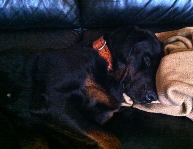 direkt nach dem Bällchen spielen .......schlafen. Ich weiß ja, schwarzer Hund auf schwarzem Sofa, kann man jetzt nicht soo gut sehen. Ist wie weißer Hund im Schnee.