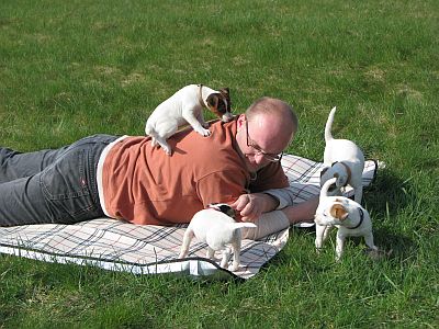 ich hab einen jack russell terrier, aber er ist schon 4 jahre alt. Idefix heißt er. Viele grüße, Idefix und ich
