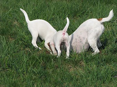 Ja, irgendwie war ich in den letzten Wochen nur ganz sporadisch hier... Es fehlte die Zeit für den PC. Bilder muss ich erst noch bearbeiten und hochladen. Da komme ich sicherlich erst Ende der Woche dazu. Inzwischen sind Bones und Baxter schon ausgezogen! Mit den verbleibenden 2 Rackern ist es deutlich ruhiger und entspannter. Aber trotzdem nehmen sie noch viel Zeit in Anpsruch. Für Brecon haben wir einen Interessenten, der schon einen Rüden hat. Leider gehen wir davon aus, dass der Rüde Träger einer Erbkrankheit (primäre Linsenluxation)ist, was eigentlich nicht schlimm ist, aber natürlich die Hündin mit mehr Vorsicht ausgesucht werden muss. Also haben wir gestern den DNA-Test nach GB geschickt und hoffen, dass Brecon Clear getestet wird. Für Bippus hat sich bislang noch niemand gemeldet, was wir nicht so richtig nachvollziehen können, da er sich zu einem echt tollen Hund entwickelt! Aufgeweckt, aber dennoch ruhiger als seine Geschwister. Aber wir haben keine Eile- der oder die Richtige wird noch kommen! LG Anja