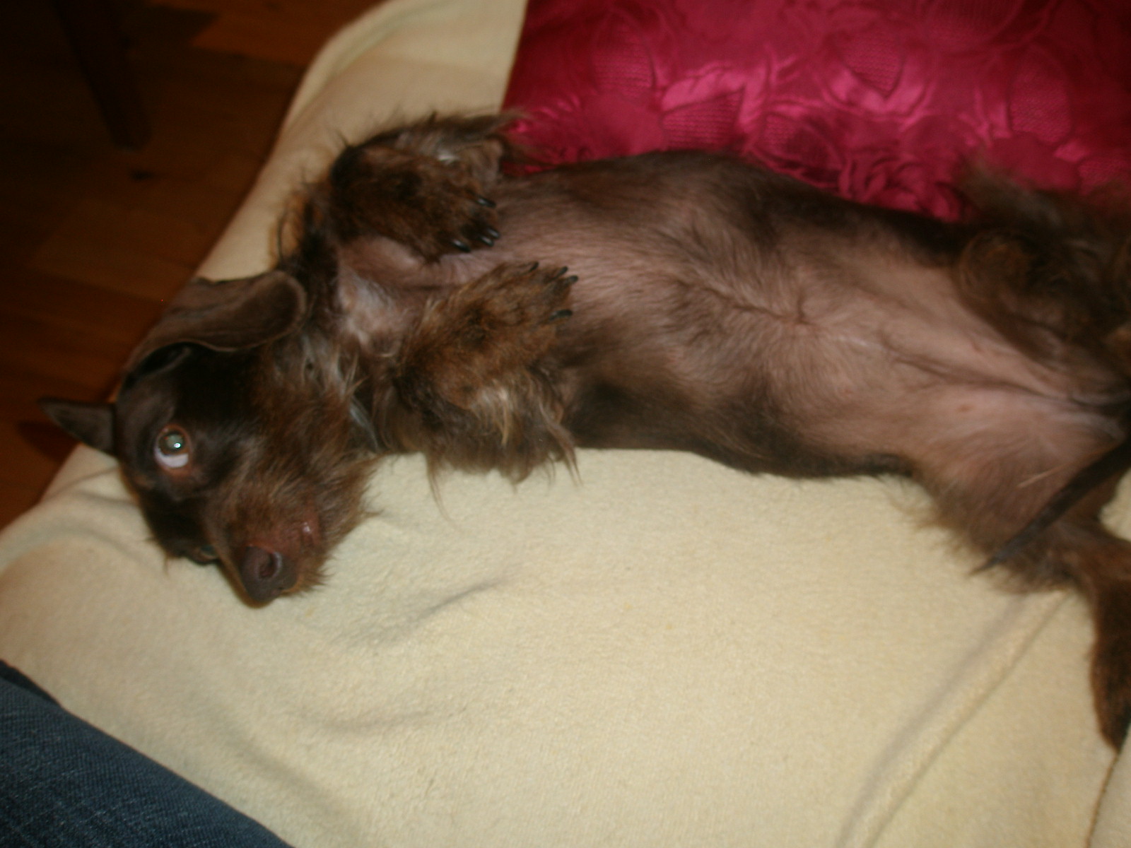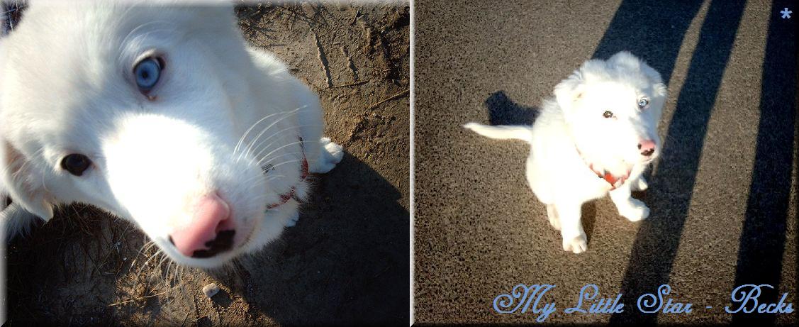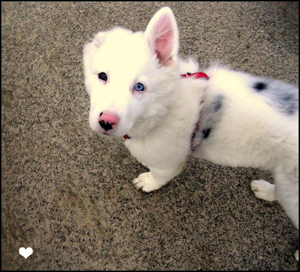 Haha, ja das schimmelige hat der noch. Ein Border - Australian Shepherd Mix, mit absoluter Fehlfarbe. Aber was solls. Ist ja nicht zum Züchten und zuchttauglich aussehen, sondern zum kümmern und liiieb haben. Obwohl ich dazu sagen muss, ich bin schon etliche Male gefragt worden, ob ich den denn nicht zum Decken mal hergeben würde. Hab aber immer abgeleht. 1. finde ich, laufen genug Mischlinge und andere knuddelige Welpen, ohne zu Hause rum 2. ist der einzigartig und soll es auch bleiben und 3. weiß ich selber gar nicht mal, ob er sonst überhaupt alle Bestimmungen erfüllen würde. Aber ist mir auch egal. Er ist mittlerweile eh kastriert.