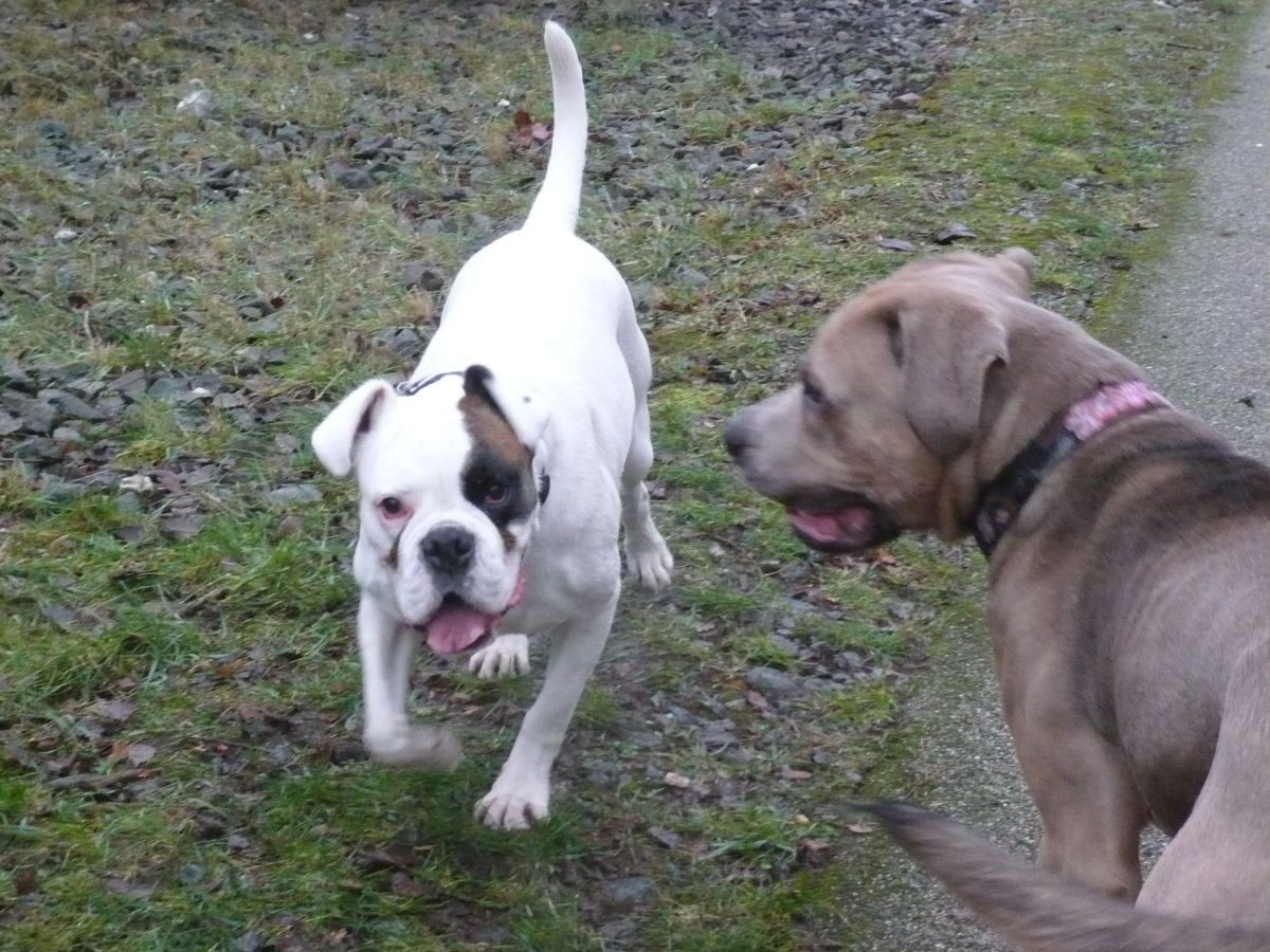 Hui, Chrissi, da werde ich aber neidisch, so schön, wie die beiden miteinander spielen. Die Boxerdame ist zum Knutschen!