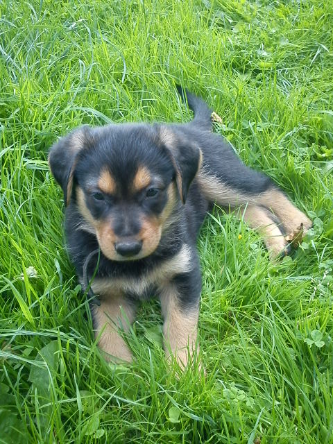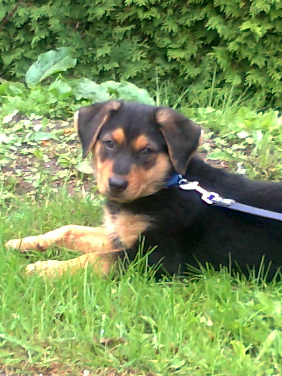 Vater war wohl ein Rottweiler,Labrador, die Mutter Mischling aus wohl auch mehreren Rassen,aber eher kleiner.