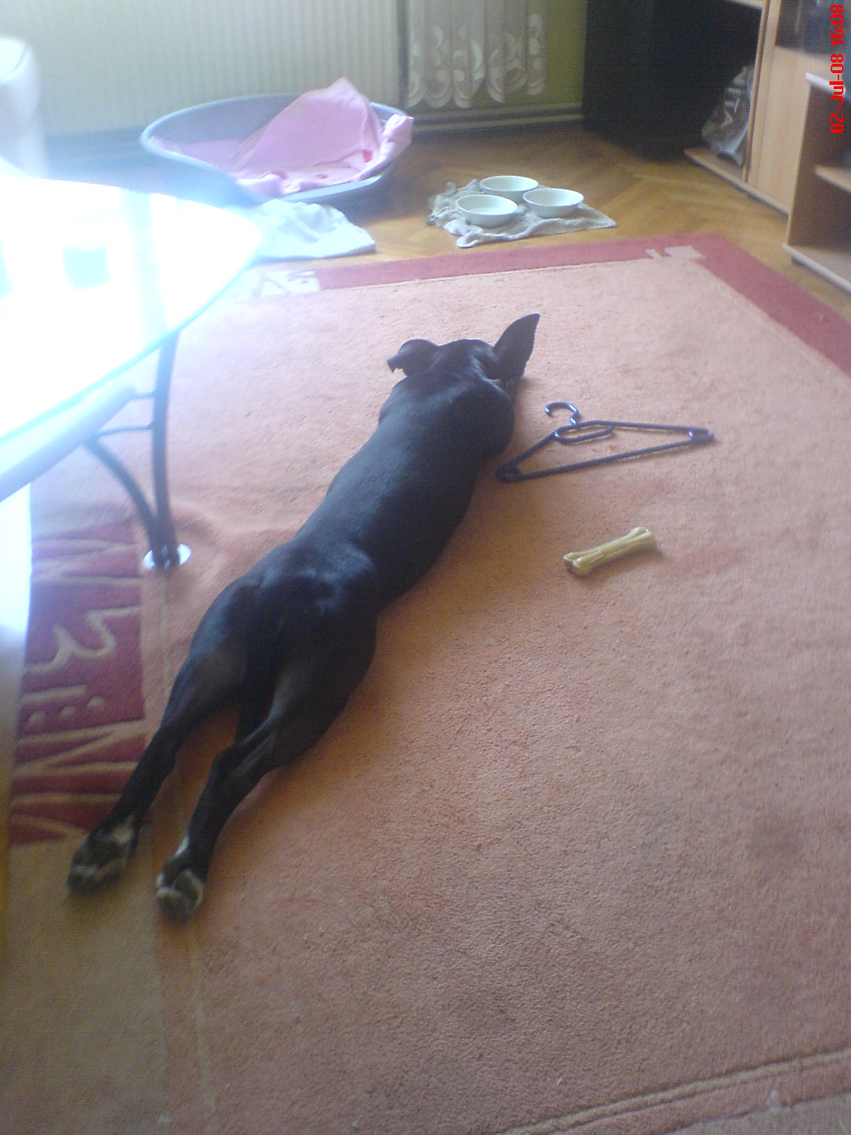 also elo, die zwei könnten echt geschwister sein, die haben echt fast die selbe zeichnung (und ich glaube bei meiner waren die pfoten nie soo groß- das schaut so süß aus) das mit fledermaus wäre sogar wahrscheinlich- da muss aber auch ein labbi oder irgendeine andere wasserratte mitspielen- oder eine robbe- na auf jeden fall war eine katze dabei, weil sie teilweise wie eine spielt (also so mit den pfoten hinhauen, opfote schnell wieder wegziehen sich anpirschen und dann mit einem hops auf die beute hüpfen,...) so, küsschen usw. hab ich ausgerichtet- und ihr auch schon gesagt, wenn sie nicht bald braver wird, dann verkaufe ich sie nach deutschland (gestern hat sies geschafft, einen skateboarder so zu erschrecken, dass der fast mit dem kopf auf den asphalt geknallt wäre aja und wegen dem welpenhaften, ich find das irgendwie gar nicht- v.a am anfang, wenn ich sie mir anderen welpen verglichen habe- das waren halt immer so extrem süße wutzis, halt einfach babys. sie hat aber eigentlich nie diesen typischen tapsigen welpengang gehabt und ich weiß nicht, bei ihr hat das mit dem kindchenschema nie so wirklich hingehauen