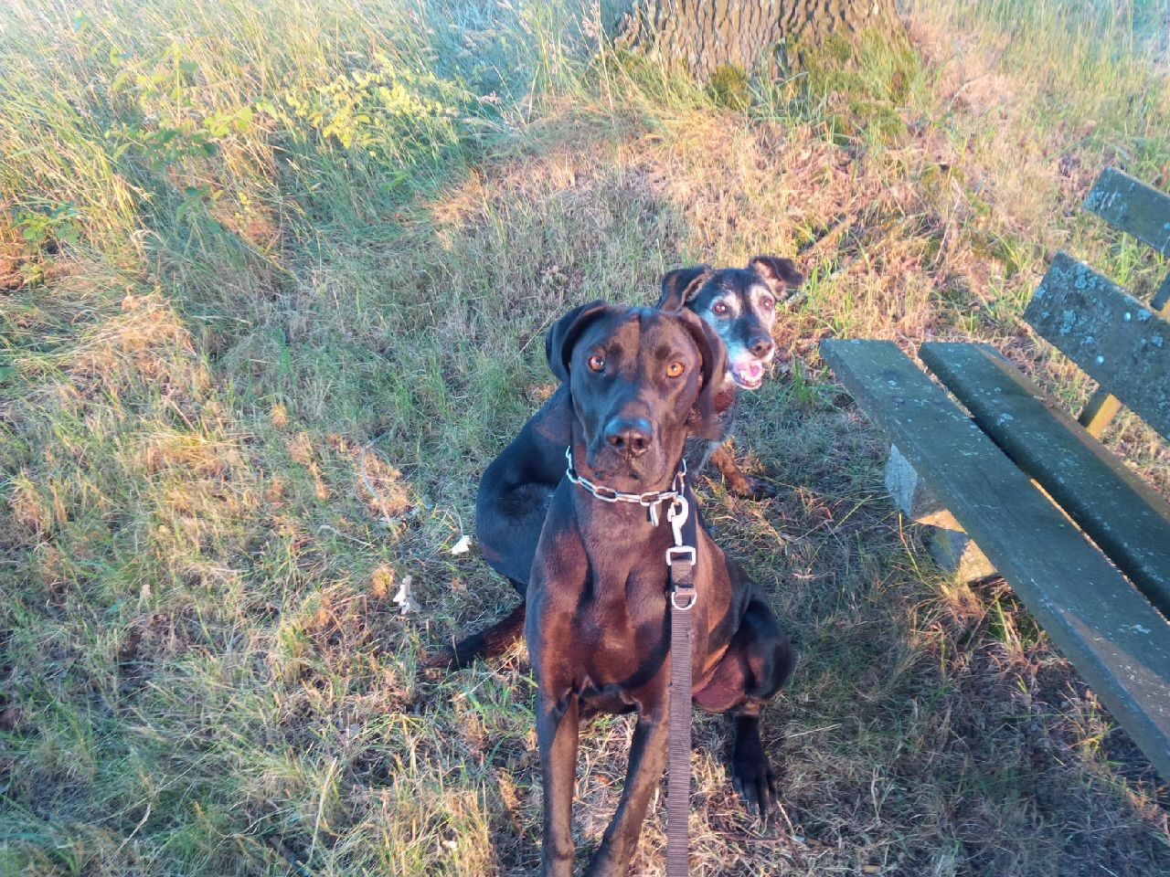 hi ihr lieben, joo, ich habe schon geschaut, das thema gab es schon so oft, aber naja, ich werde jetzt konfrontiert mit einem hund der mir nicht gehört, aber den ich sehr nett finde. meine hunde sind ja alle irgendwie mit augenkontakt schon aufgewachsen, ein blick, eine liebe, ein verständniss irgendwie, auch wenn ich strenger war, corlie ist immer noch so, sitzen bleiben, sie strahlt mich an und würde scheinbar stunden sitzen und bleiben, hi....nein das machen wir nie mein kev, dieses riesenteil ist ein hofhund, hatte ich schon geschrieben, also nur gassi hund von mir, er freut sich tierisch und corlie auch wenn wir kommen, er hört wenn ich strenger bin, auf sitz, bleib und sogar bei fuss gehen klappt, liebt es auch wenn ich ihn mal durchkrubbele. aber er schaut mich nicht an, nur kurz und traut sich irgendwie nicht, oder will nicht, das finde ich schade, ich mag nicht mit leckerlis und so, das mache ich bei meinen nicht und auch nicht bei fremden hund, ich gehe ja jetzt auch erst seit 14 tagen, aber es irritiert mich. habe ihn schon in 4 tagen abgwöhnt, er darf mich nicht besteigen und mich auch nicht immer vollsabbeln, aber er schaut nicht, er wird nervös wenn ich ihn mal anschauen will. bitte , falls jemand antwortet, nicht die leckerlie masche, das mache ich nicht und werde auch nicht bei gassi hund anfangen, vielleicht bin ich auch zu früh und bekomme das schon hin, weil denke ist auch vertrauen, aber momentan bin ich auch unsicher. aber freue mich, weil das doch so gut klappt und gestern war fahrrad fahrer unterwegs und hat gemeint, hoffe die überfallen mich nicht. und ich nö... corlie doch sowieso nicht, aber kev... wow, musste mal ehrlich recht streng sein, hi liebe gruesse und joooo wenn hilfe wäre fein, wenn nicht, muss ich wohl einfach nur mal akzeptieren, das es das auch gibt elo und cora und cleo und kev