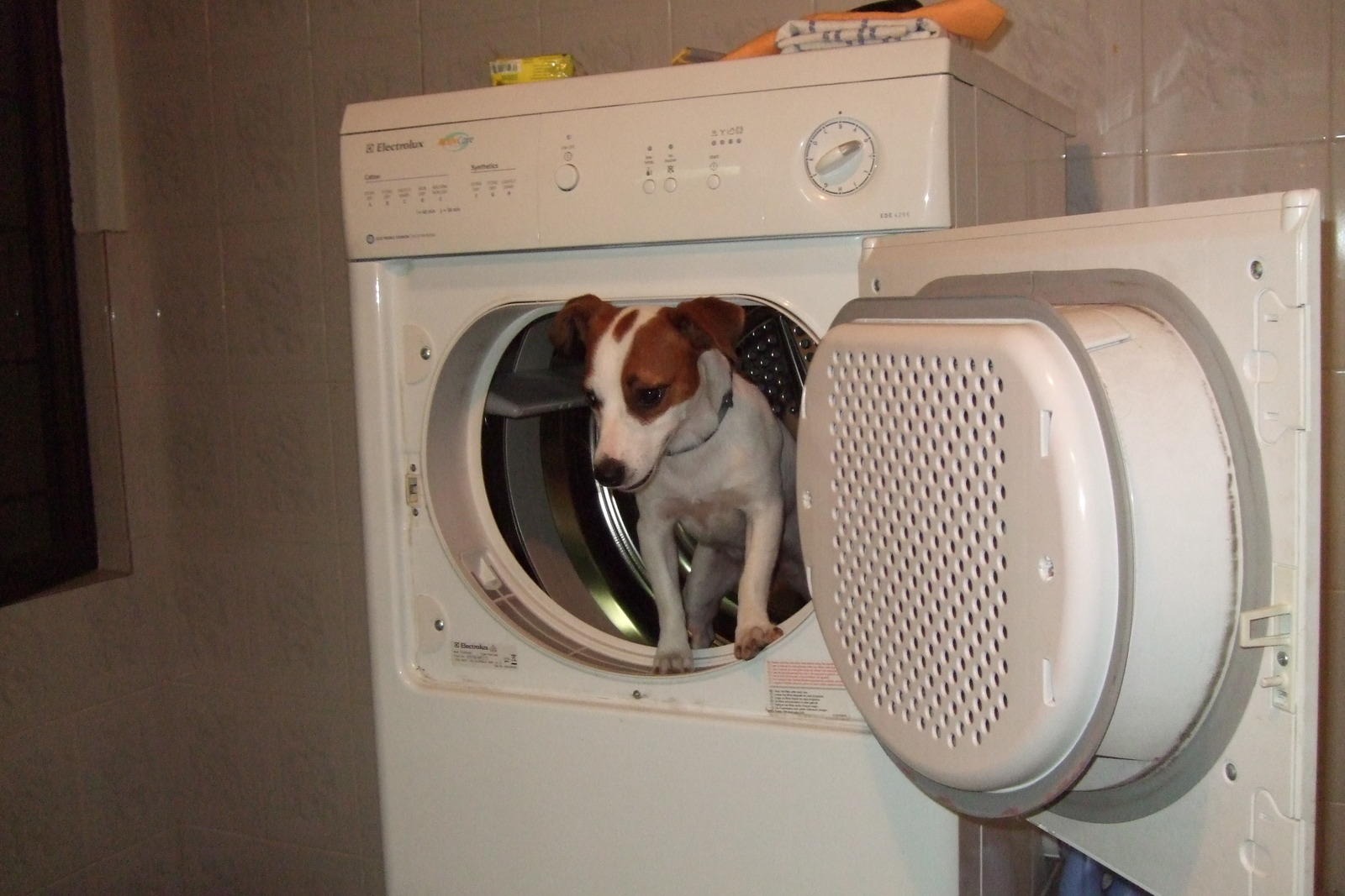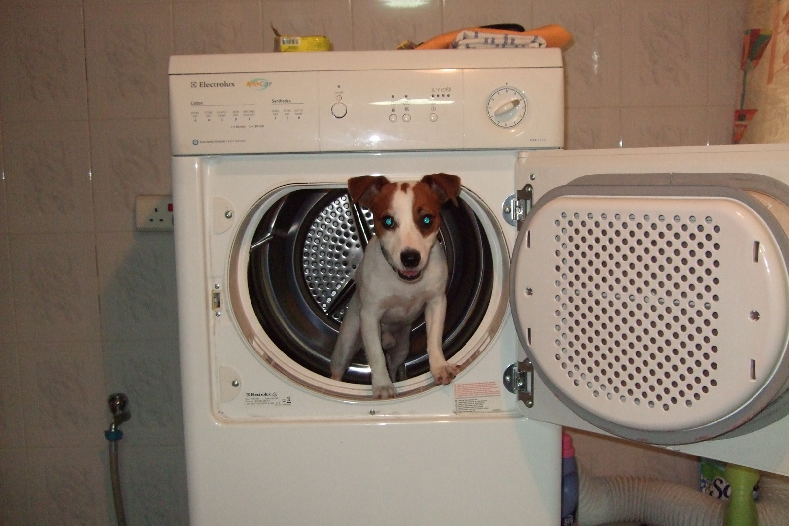 Bei mir kommt da ALLES rein Mein Freund warnt Toby immer von wegen Hunde die Waesche klauen kommen in den Trockner.... das wollte Toby ihm wohl nicht glauben *kicher*